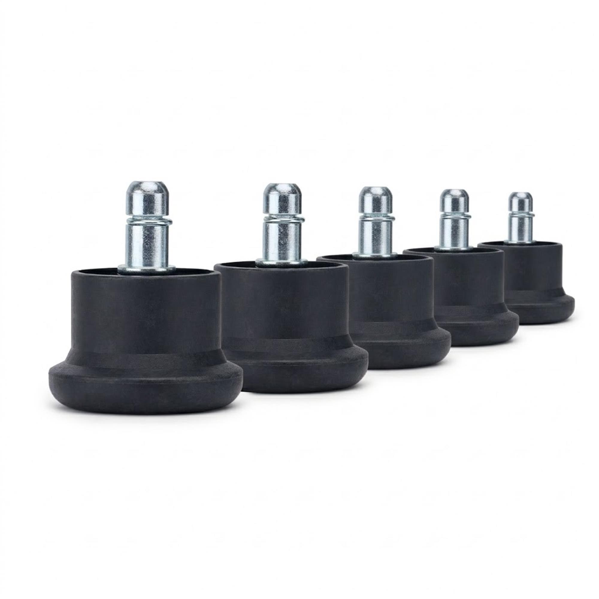 Set da 5 piedini PAD 10 per sostituire le ruote delle sedie da ufficio. Una soluzione pratica ed elegante per migliorare la stabilità e la protezione di sedie, sgabelli o poltrone. Il design compatto e pulito si integra facilmente con diversi stili di mobili, offrendo un aspetto discreto ma curato.