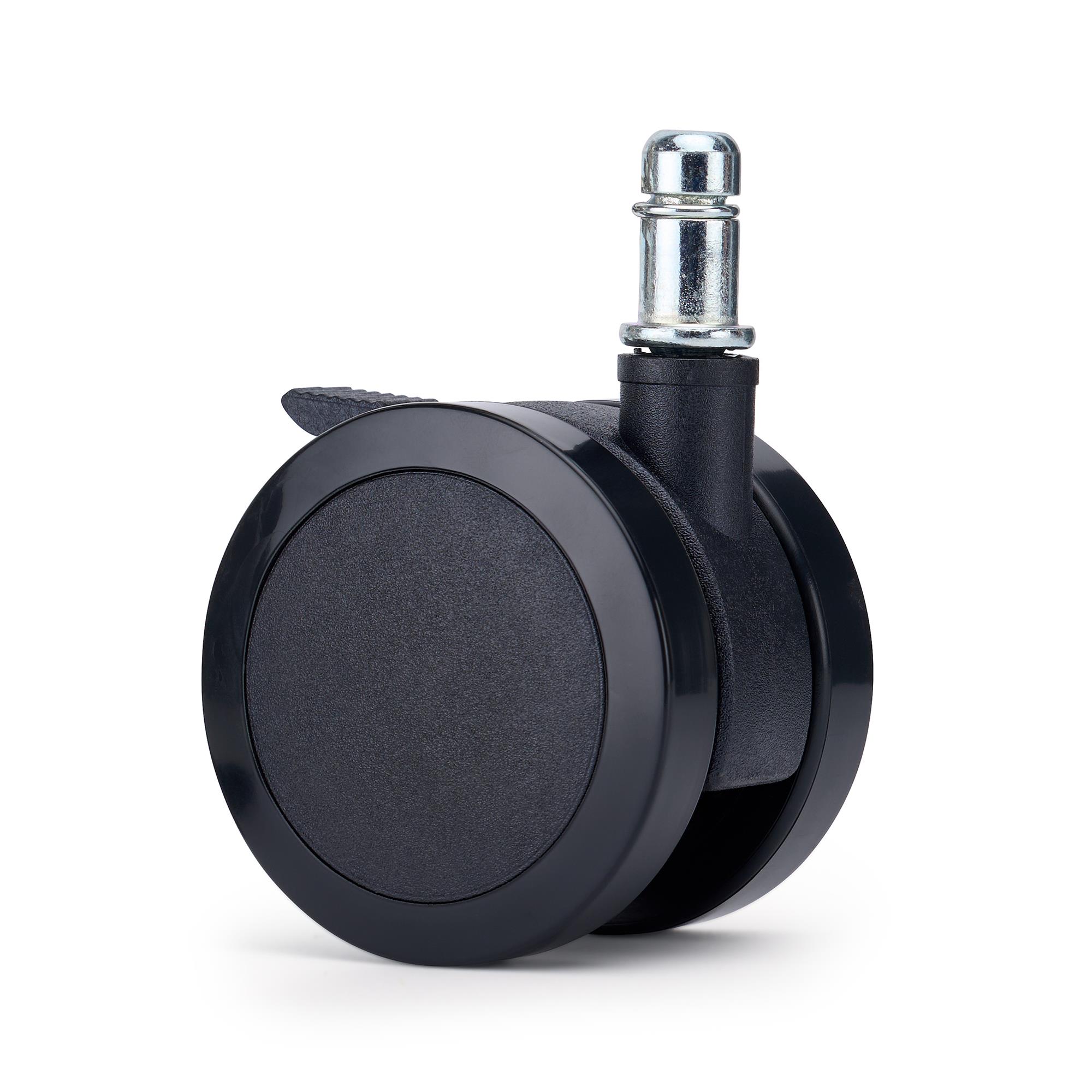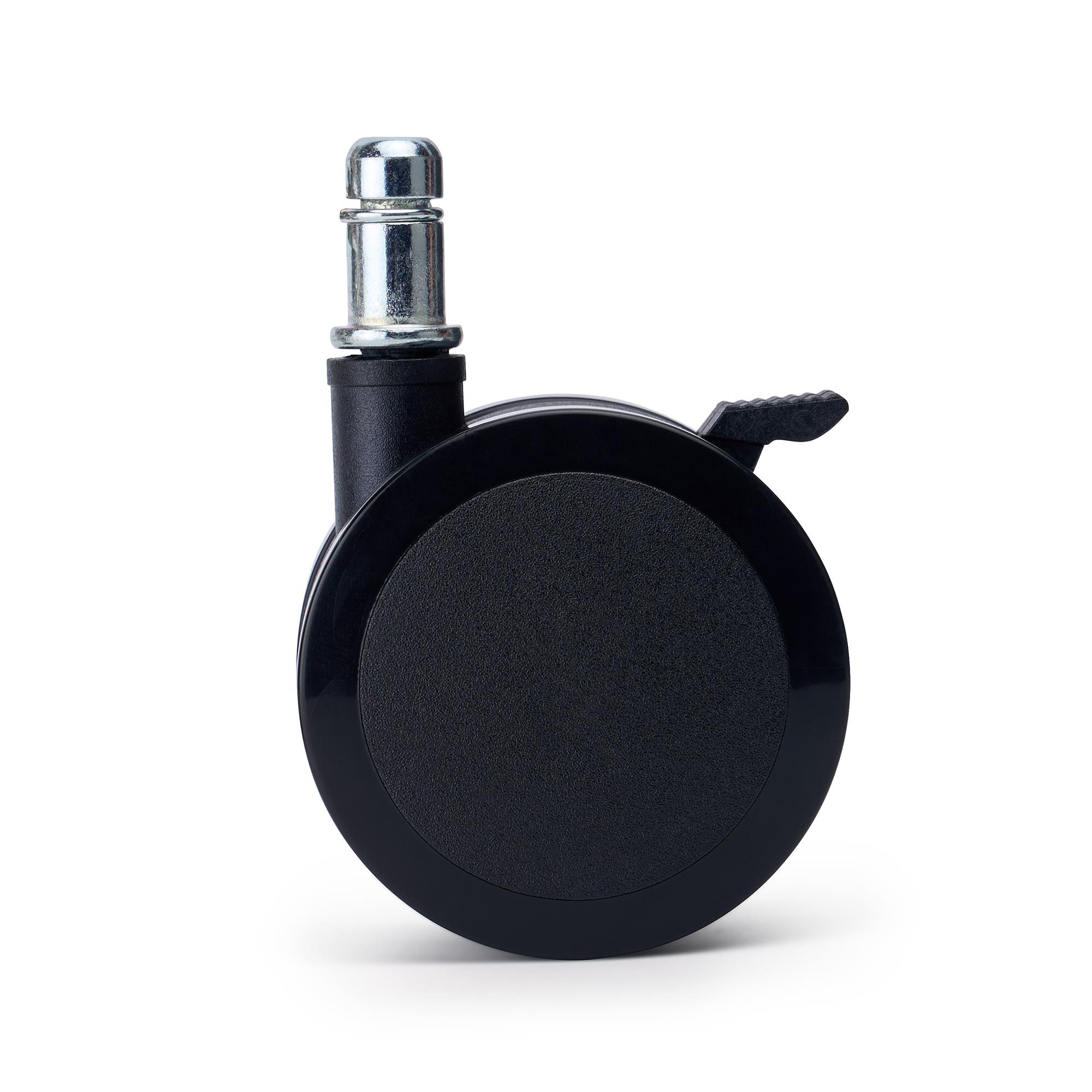 Set di 5 ruote per sedie da ufficio BRAKE. Stabili e scorrevoli, standard quindi perfette per essere utilizzate come ricambio per qualsiasi sedia e poltrona da ufficio del nostro sito che necessiti di nuove ruote girevoli.