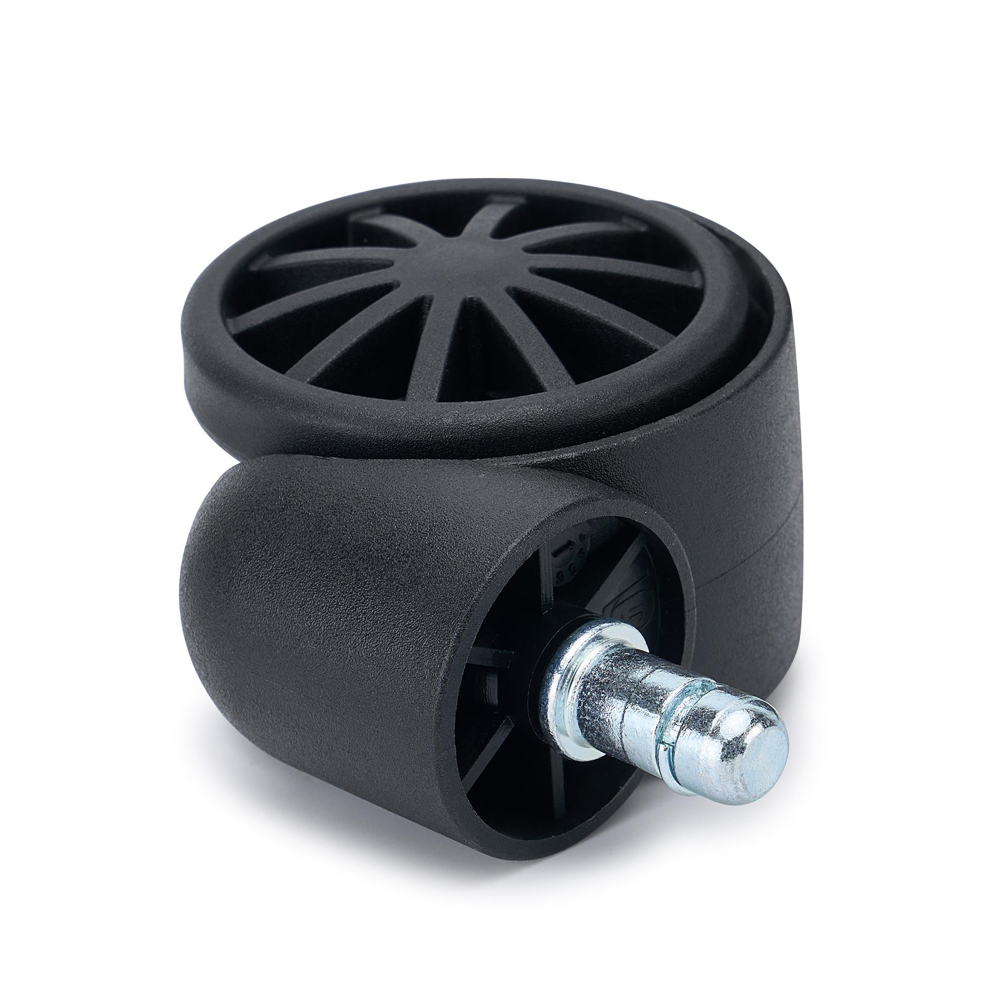 Lotto di 5 ruote per sedie da ufficio GROVE. Queste ruote per sedie da ufficio si distinguono per il loro design moderno con razze sottili e struttura nera opaca che dona un look elegante e professionale, perfetto per sedie da ufficio, operative o da smartworking.