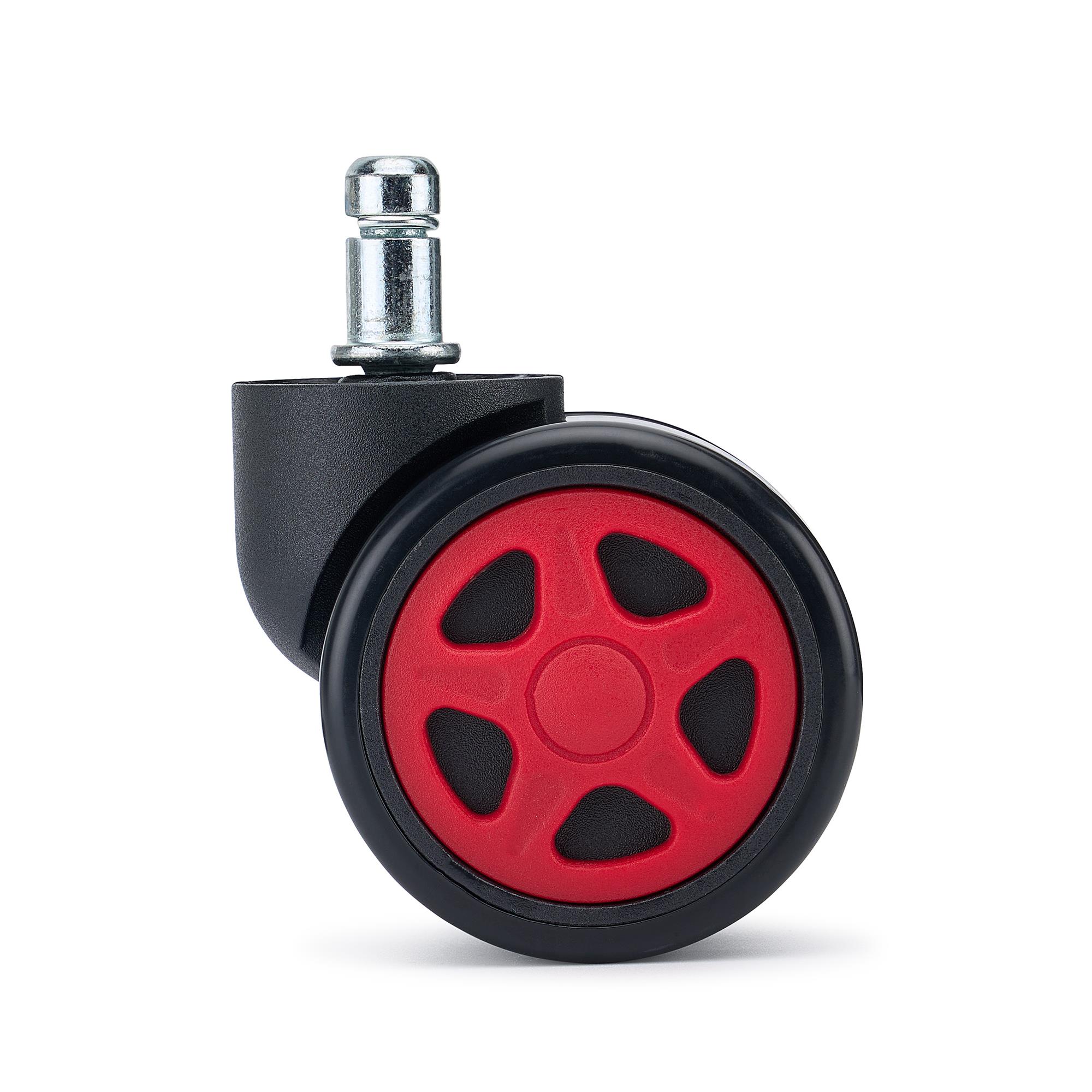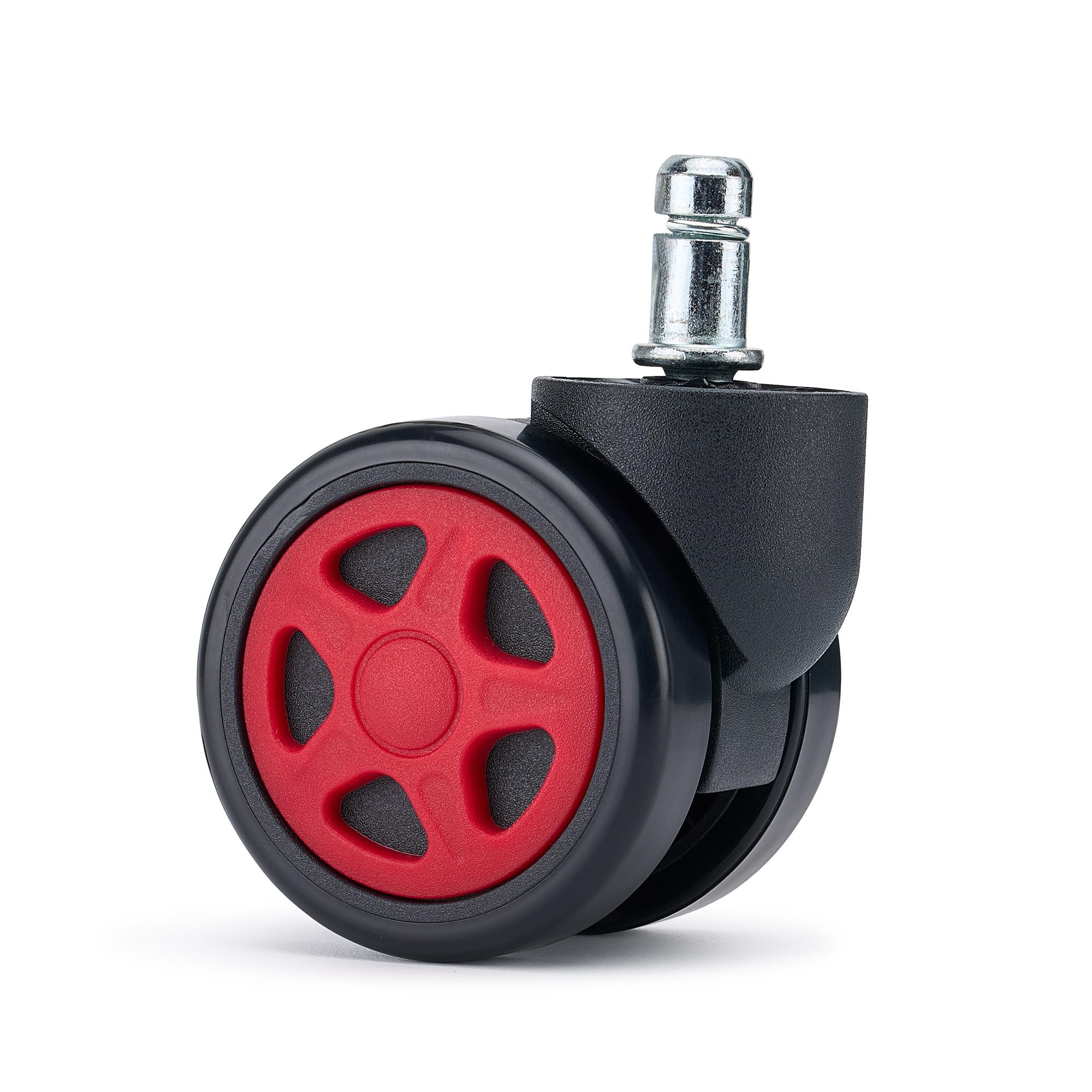 Lotto di 5 ruote per sedie da ufficio SPEED. Questo modello porta stile e personalità alle sedie gaming o da ufficio. Queste ruote hanno un design sportivo e dal colore vivace e sono pensate per chi vuole unire prestazioni e impatto estetico. Il contrasto tra la struttura nera e il mozzo colorato dona alla ruota un look dinamico e moderno, perfetto per setup gaming, studi creativi e uffici contemporanei.