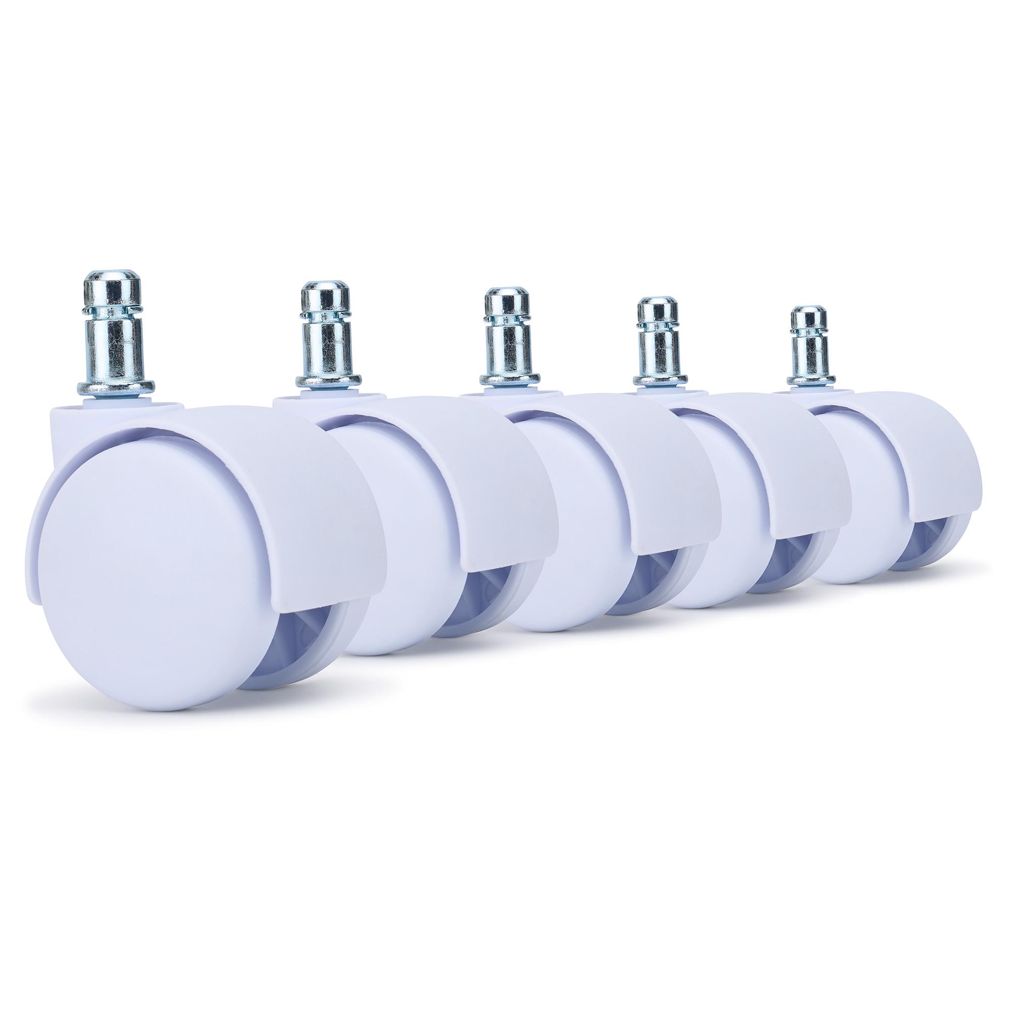 5x Ruote per Sedie da Ufficio SPIN 11x50mm, Minimalista e Funzionale, Bianco
