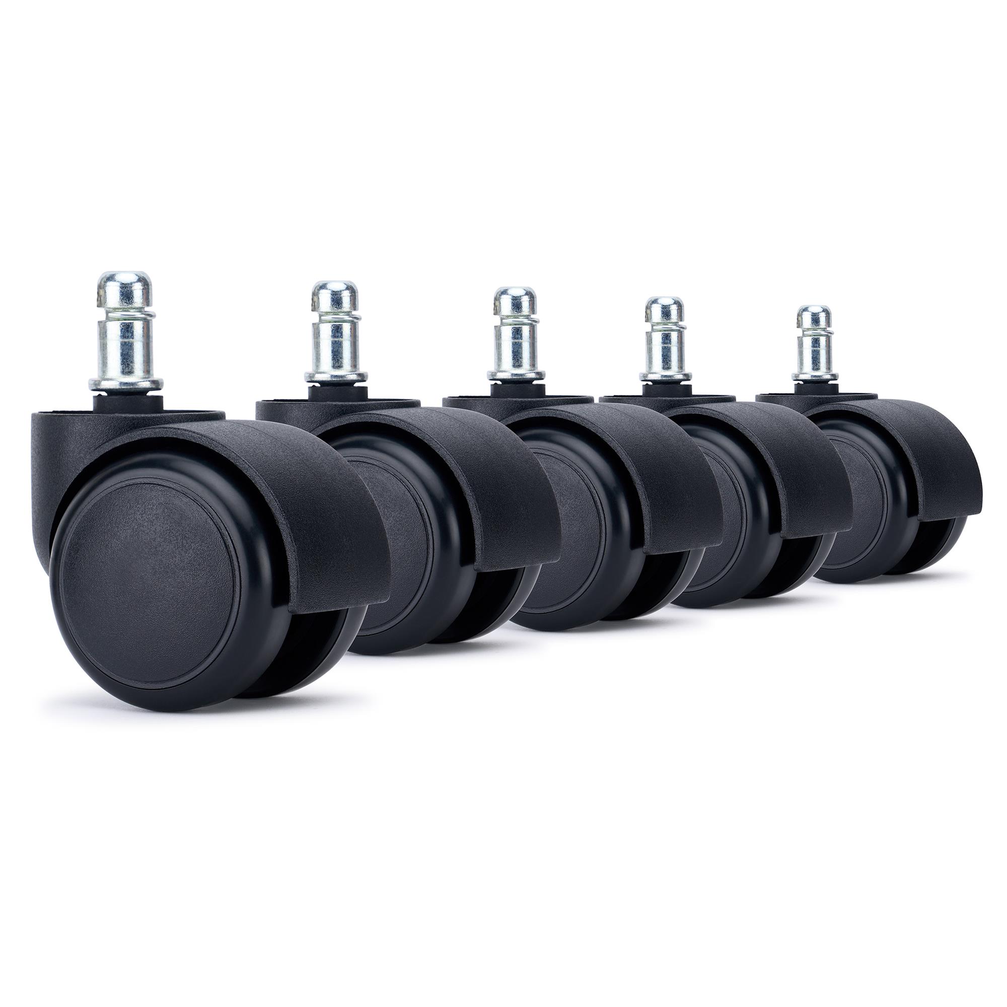 L'installazione è molto semplice grazie al perno universale da 11mm in metallo che garantisce un incastro solido e duraturo. La versatilità è il vero punto di forza di questa serie: oltre alla versione in nero le ruote sono disponibili nelle colorazioni Grigio, Blu, Verde e Bianco. Questa varietà permette una personalizzazione totale, consentendo di abbinare perfettamente le ruote al colore della base della sedia o ai dettagli dell'arredamento circostante.