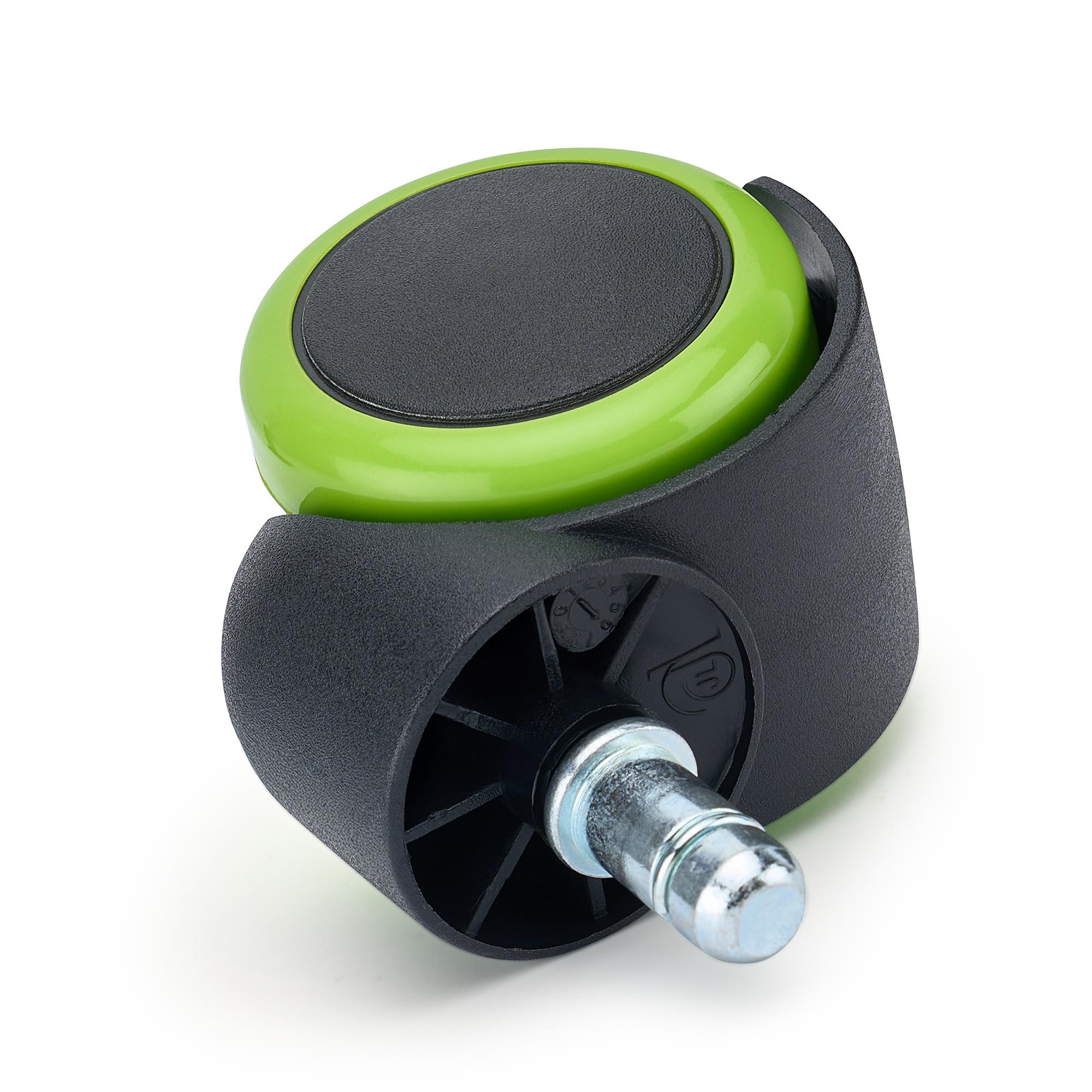 L'installazione è molto semplice grazie al perno universale da 11mm in metallo che garantisce un incastro solido e duraturo. La versatilità è il vero punto di forza di questa serie: oltre alla versione in verde le ruote sono disponibili nelle colorazioni Bianco, Blu, Grigio e Nero. Questa varietà permette una personalizzazione totale, consentendo di abbinare perfettamente le ruote al colore della base della sedia o ai dettagli dell'arredamento circostante.