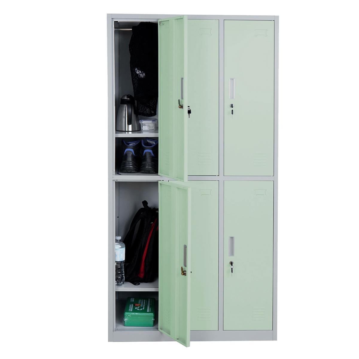 Conta con 6 scomparti individuali, ognuno con portaetichette così da poterlo personalizzare, serratura con chiave individuale, diventa un'ottima soluzione per riporre indumenti e oggetti personali durante il lavoro.