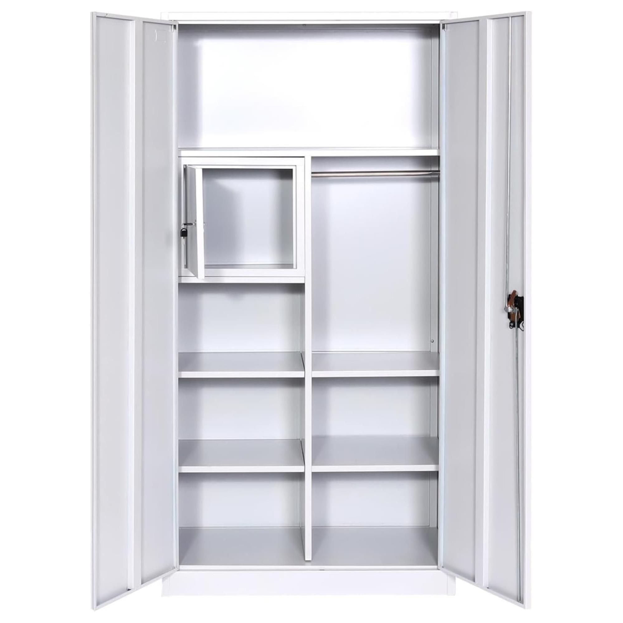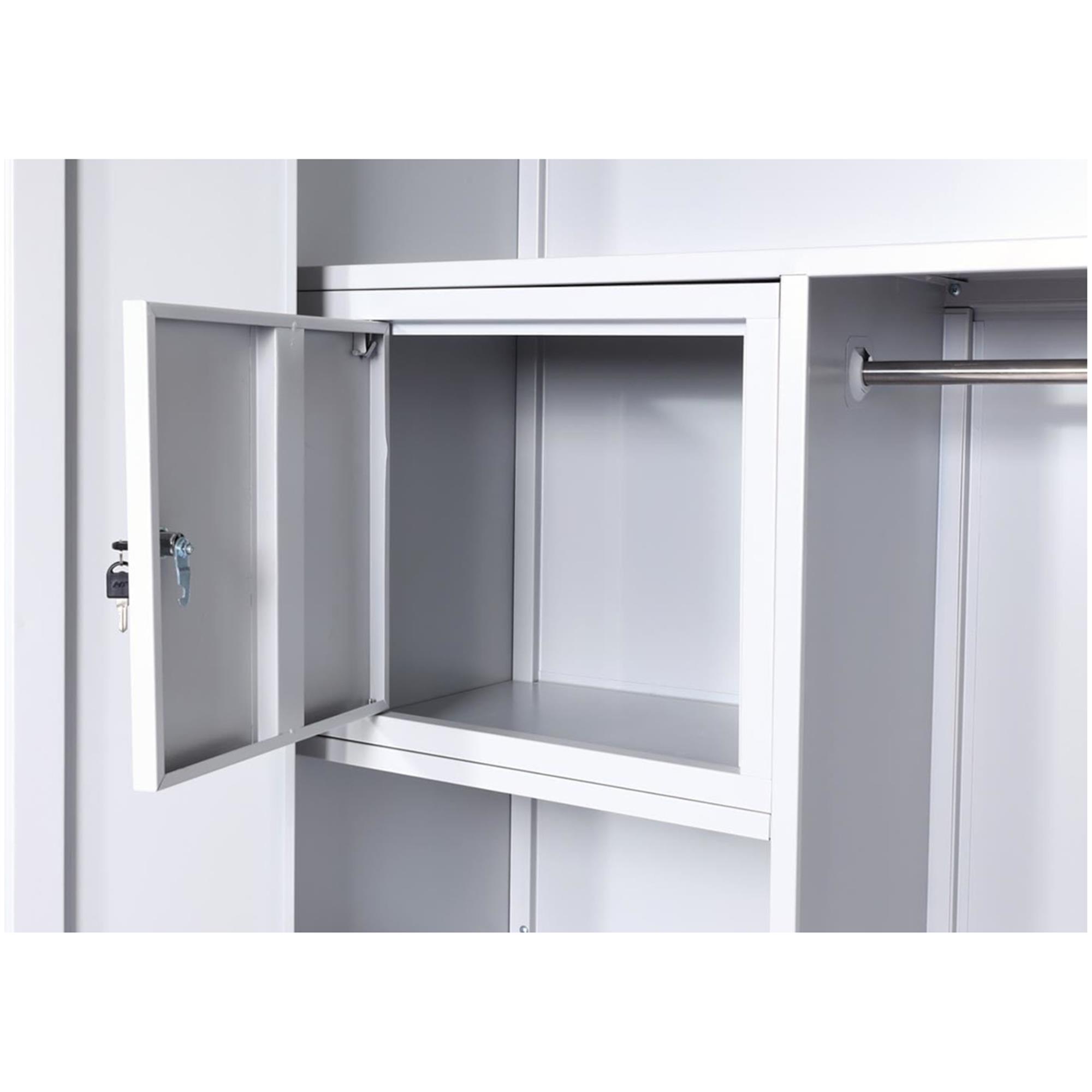 Questo modello ha due ante a battente dietro le quali si trovano sei ampi ripiani ed è incluso anche un armadietto interno con serratura a chiave per riporre in modo sicuro documenti riservati o effetti personali. Anche le ante esterne sono dotate di chiave per garantirti la massima discrezione e sicurezza.
