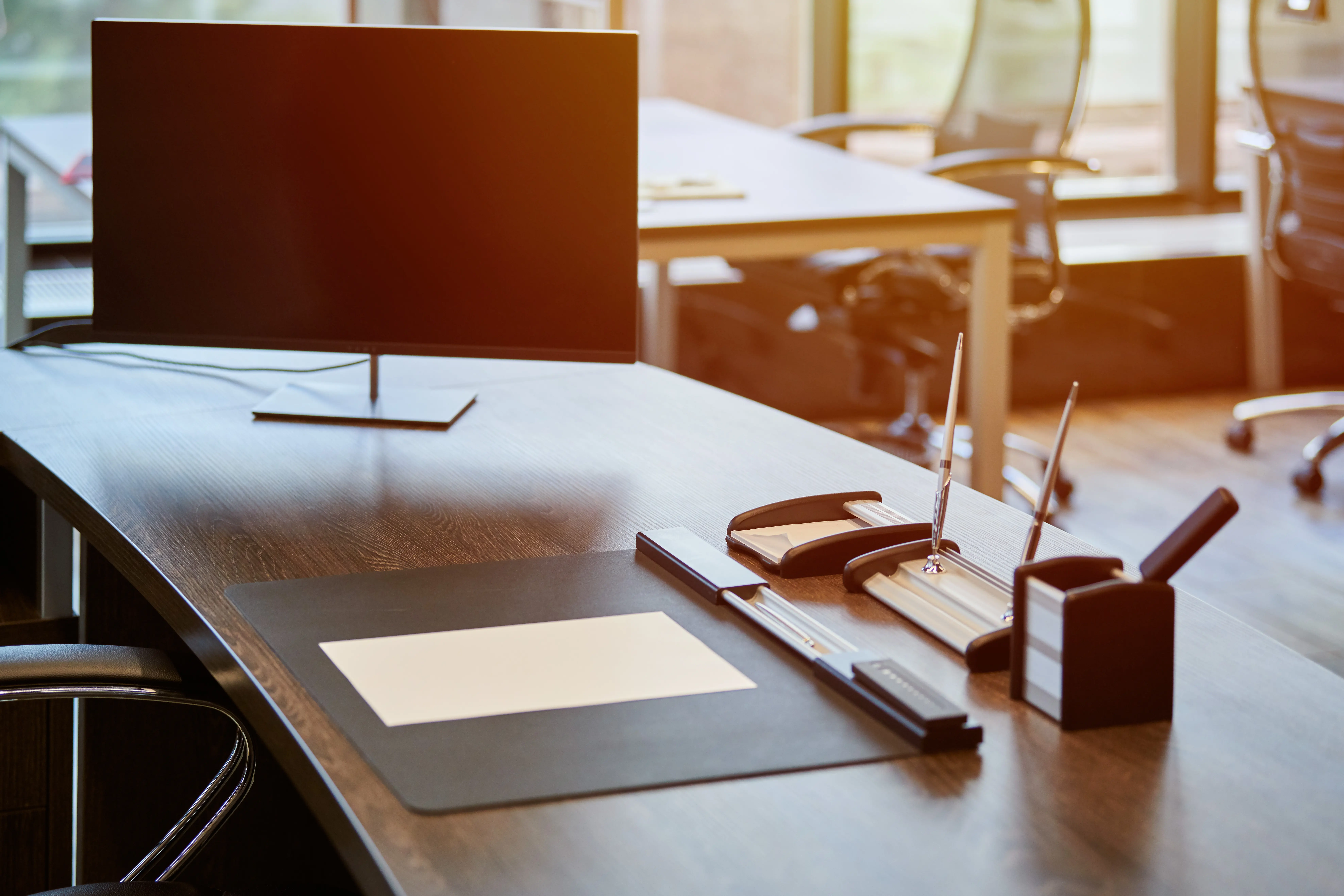 Se possibile posizionare la scrivania in modo da avere una visuale sulla porta. Questo crea un’atmosfera più naturale ed evita il disagio di non sapere se qualcuno sta per entrare. Consigliamo anche di lasciare uno spazio sufficientemente comodo per ricevere i clienti: due sedie ben posizionate, un tavolino ausiliario o un’area più informale, se lo studio lo consente. Non si dimentichi anche che gli spazi hanno la loro importanza e in caso di più scrivanie nello stesso ambiente si tenga conto della corretta distanza tra scrivanie in ufficio.
