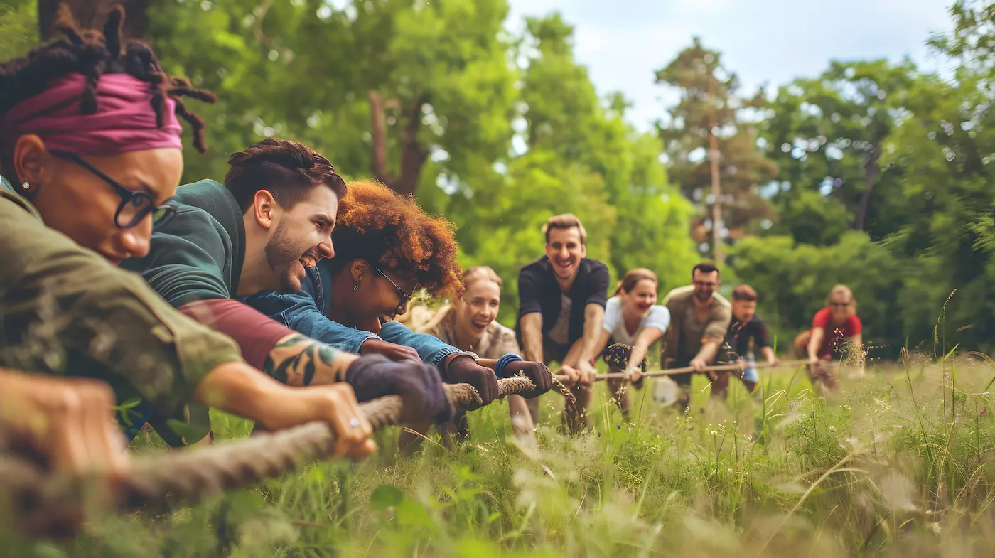 Nelle aziende con un numero elevato di dipendenti, anche se può sembrare complicato, è possibile implementare giochi o tecniche di team building. Tra le possibili attività che possono essere svolte con gruppi numerosi si evidenziano quelle destinate all’aria aperta, attività ludiche come “il gioco della corda”, in cui i partecipanti si dividono in due grandi gruppi e tirano la corda fino a quando una delle due squadre ottiene la vittoria.