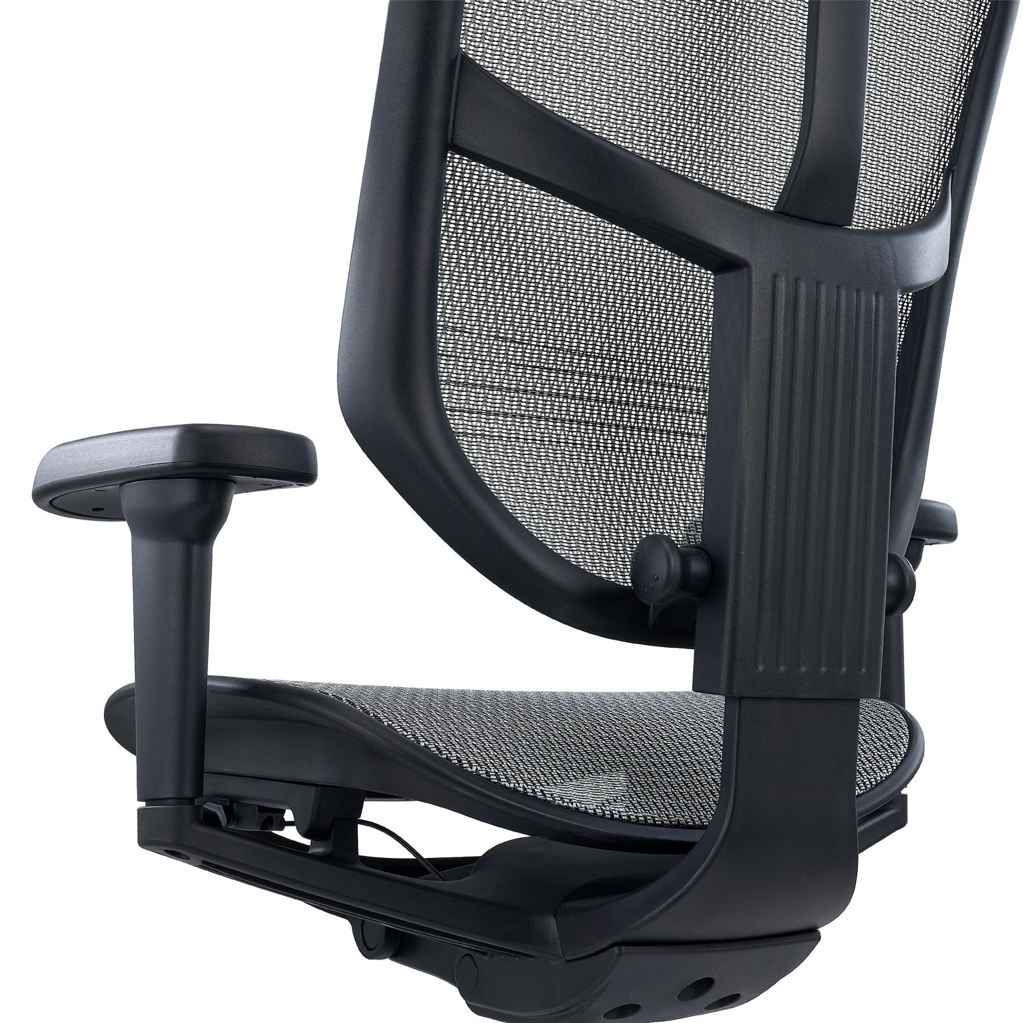 Lo schienale è ergonomico e dotato di meccanismo di reclinazione sincronizzata (90º-138º) bloccabile in 3 posizioni. Si tratta di un sistema più moderno rispetto agli altri prodotti con il risultato di avere una regolazione molto più fluida. Per la regolazione si utilizza una unica manopola che racchiude varie funzioni.