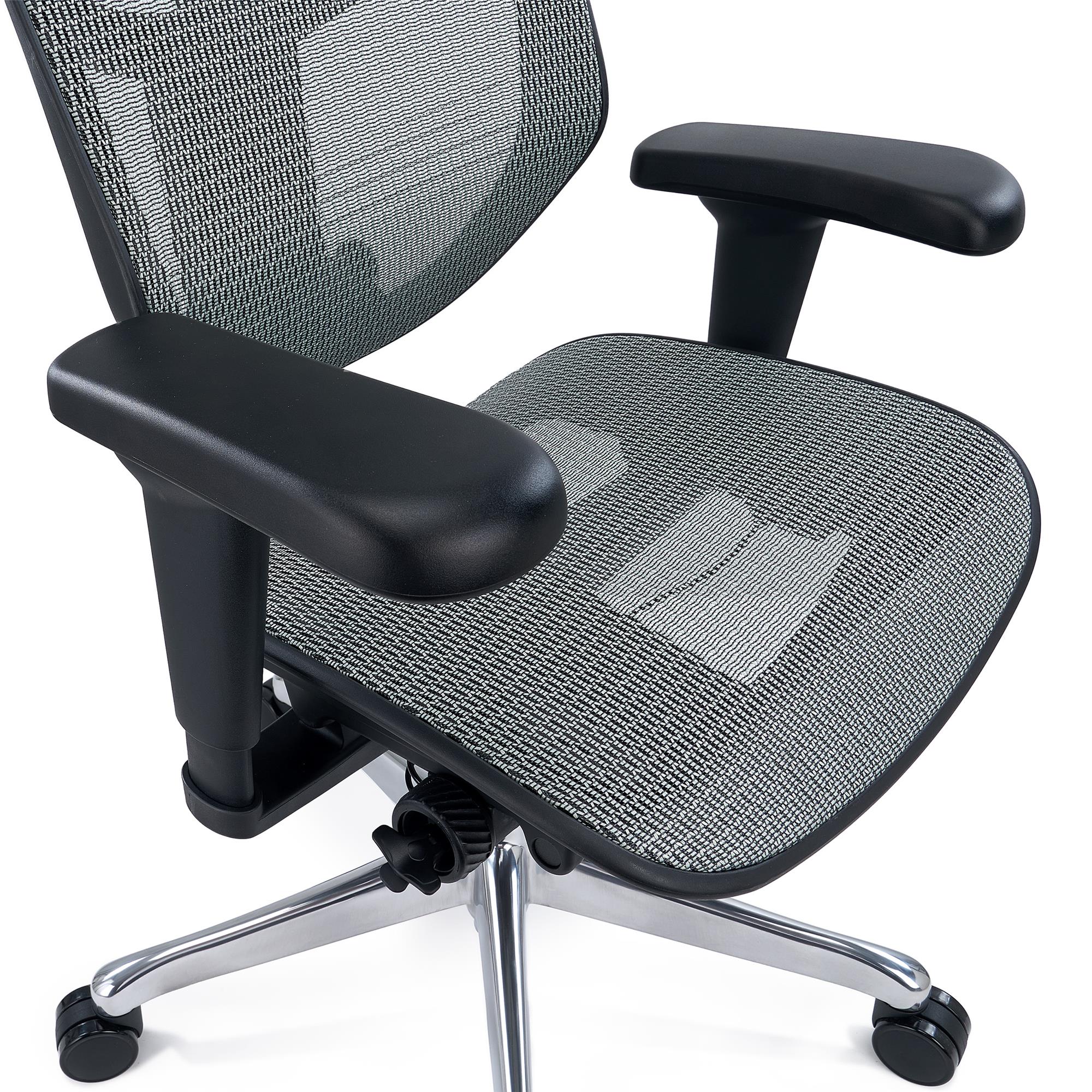 Il sedile è regolabile in profondità ed è ampio e con i bordi arrotondati e ha ben 10 zone a pressione differente così da adattarsi perfettamente all'utente. Il rivestimento di tutta la seduta è realizzato in tessuto a rete molto resistente e di facile pulizia. Questo materiale assicura una seduta comoda ma sostenuta favorendo una corretta postura anche dopo un utilizzo di molte ore consecutive.