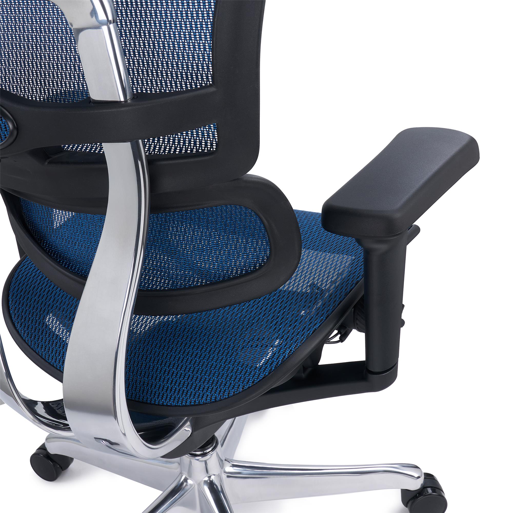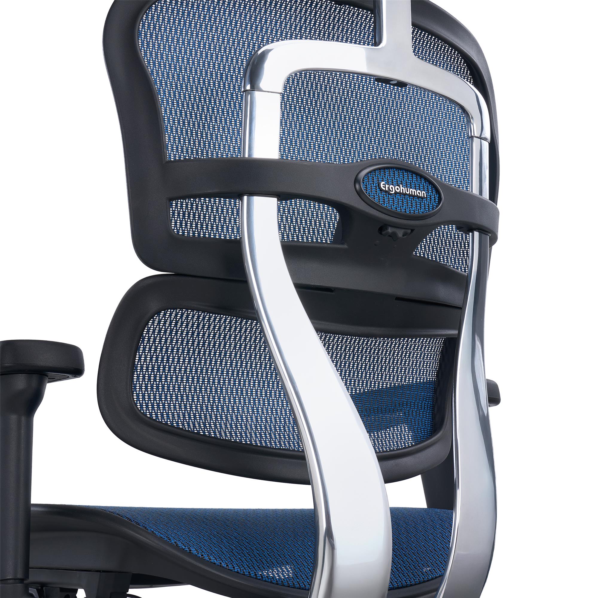 Lo schienale è completamente ergonomico, regolabile in altezza e dotato di supporto lombare. Il telaio è realizzato in alluminio lucido che conferisce eleganza alla seduta ma anche, e soprattutto, robustezza e solidità. La regolazione in altezza dello schienale si può effettuare su 6 livelli così da poter essere adatattato a qualsiasi altezza dell'utilizzatore.