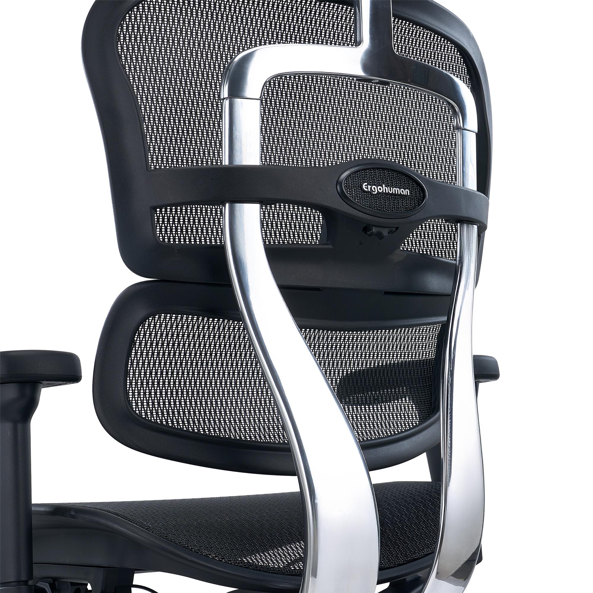 Lo schienale è completamente ergonomico, regolabile in altezza e dotato di supporto lombare. Il telaio è realizzato in alluminio lucido che conferisce eleganza alla seduta ma anche, e soprattutto, robustezza e solidità. La regolazione in altezza dello schienale si può effettuare su 6 livelli così da poter essere adatattato a qualsiasi altezza dell'utilizzatore.