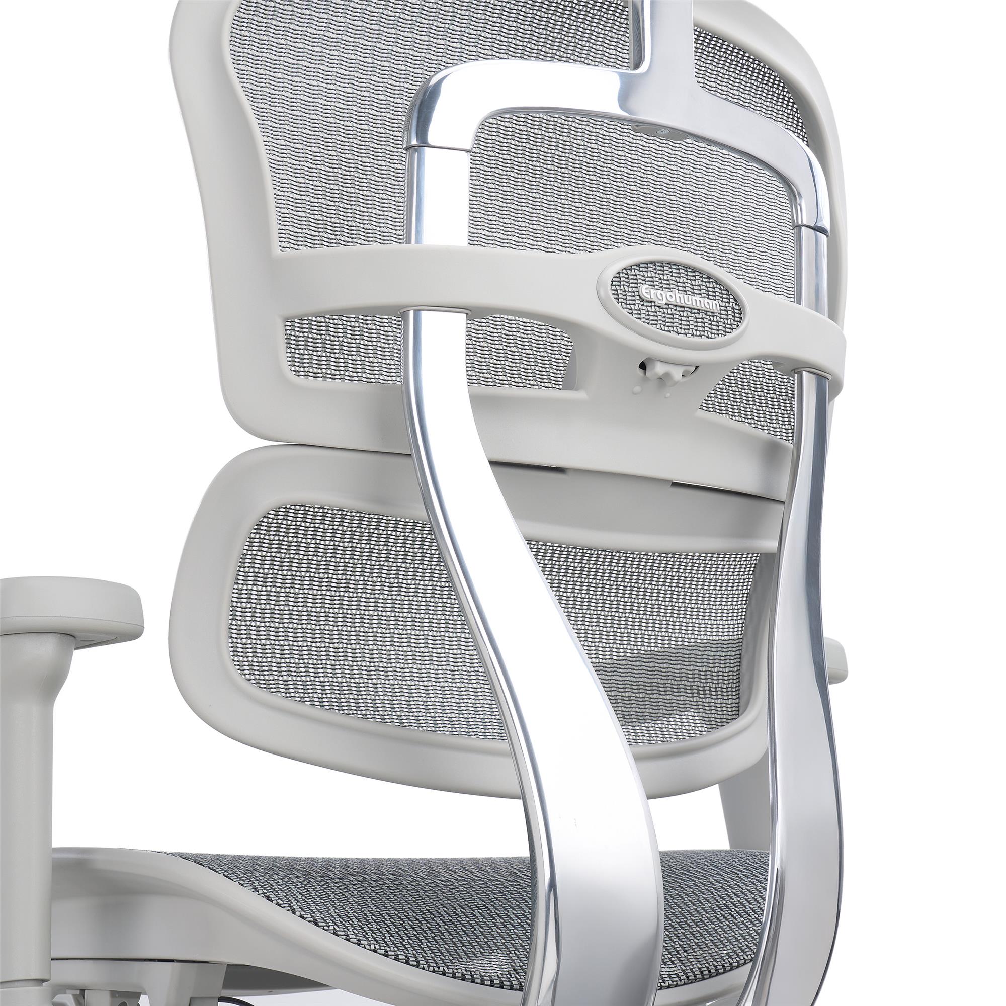 Lo schienale è completamente ergonomico, regolabile in altezza e dotato di supporto lombare. Il telaio è realizzato in alluminio lucido che conferisce eleganza alla seduta ma anche, e soprattutto, robustezza e solidità. La regolazione in altezza dello schienale si può effettuare su 6 livelli così da poter essere adatattato a qualsiasi altezza dell'utilizzatore.