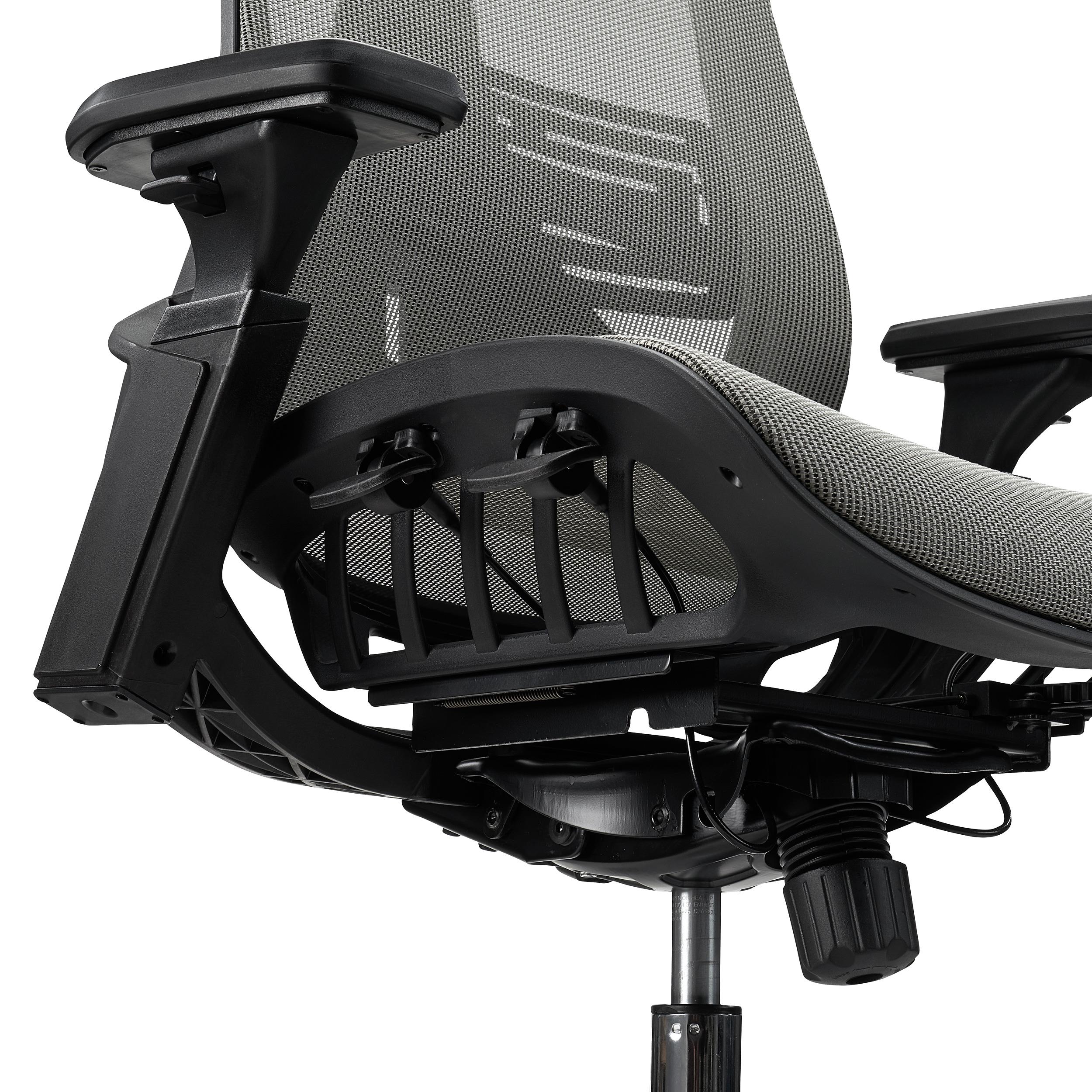 • Schienale traspirante con supporto lombare• Braccioli regolabili in 3D (altezza, angolo e profondità)
