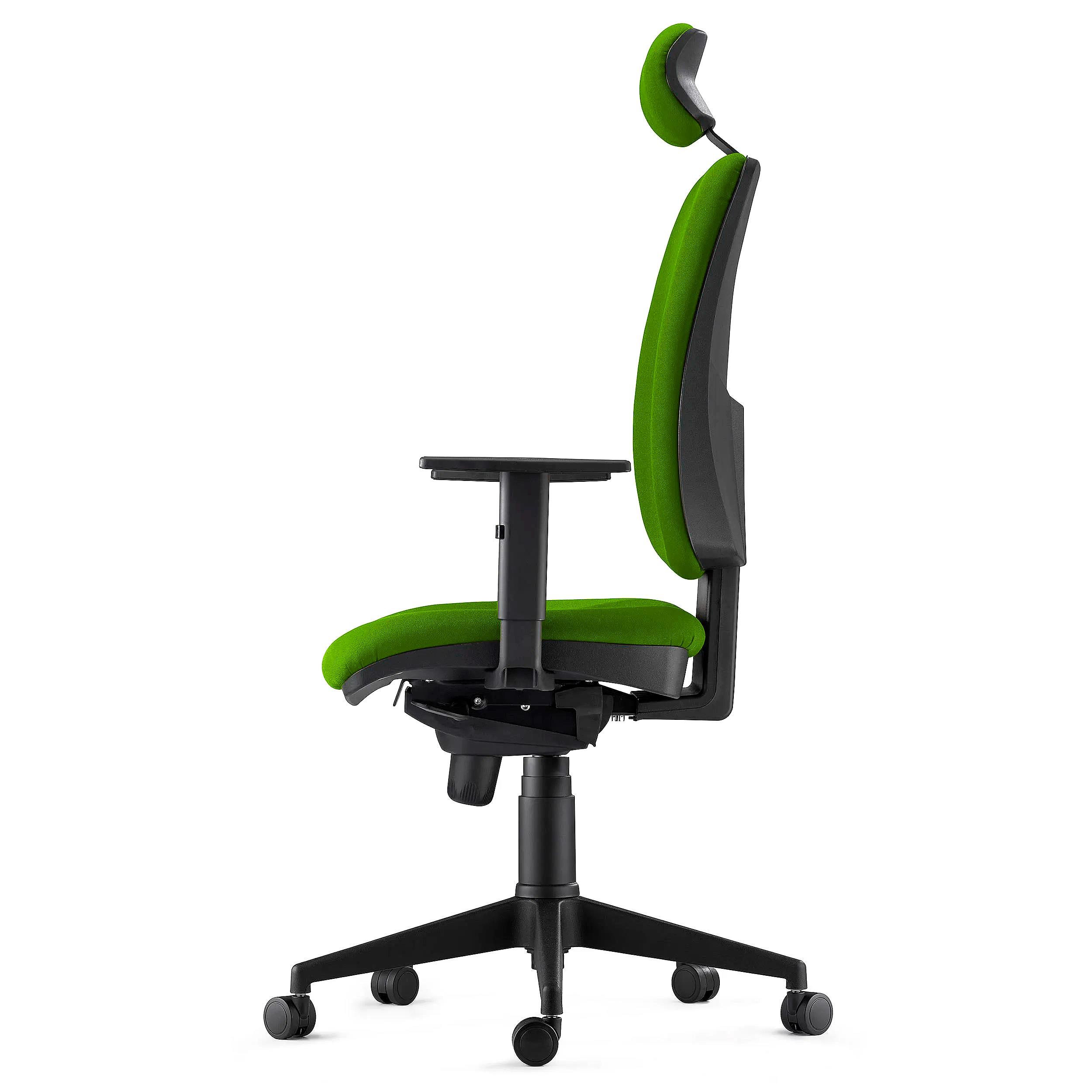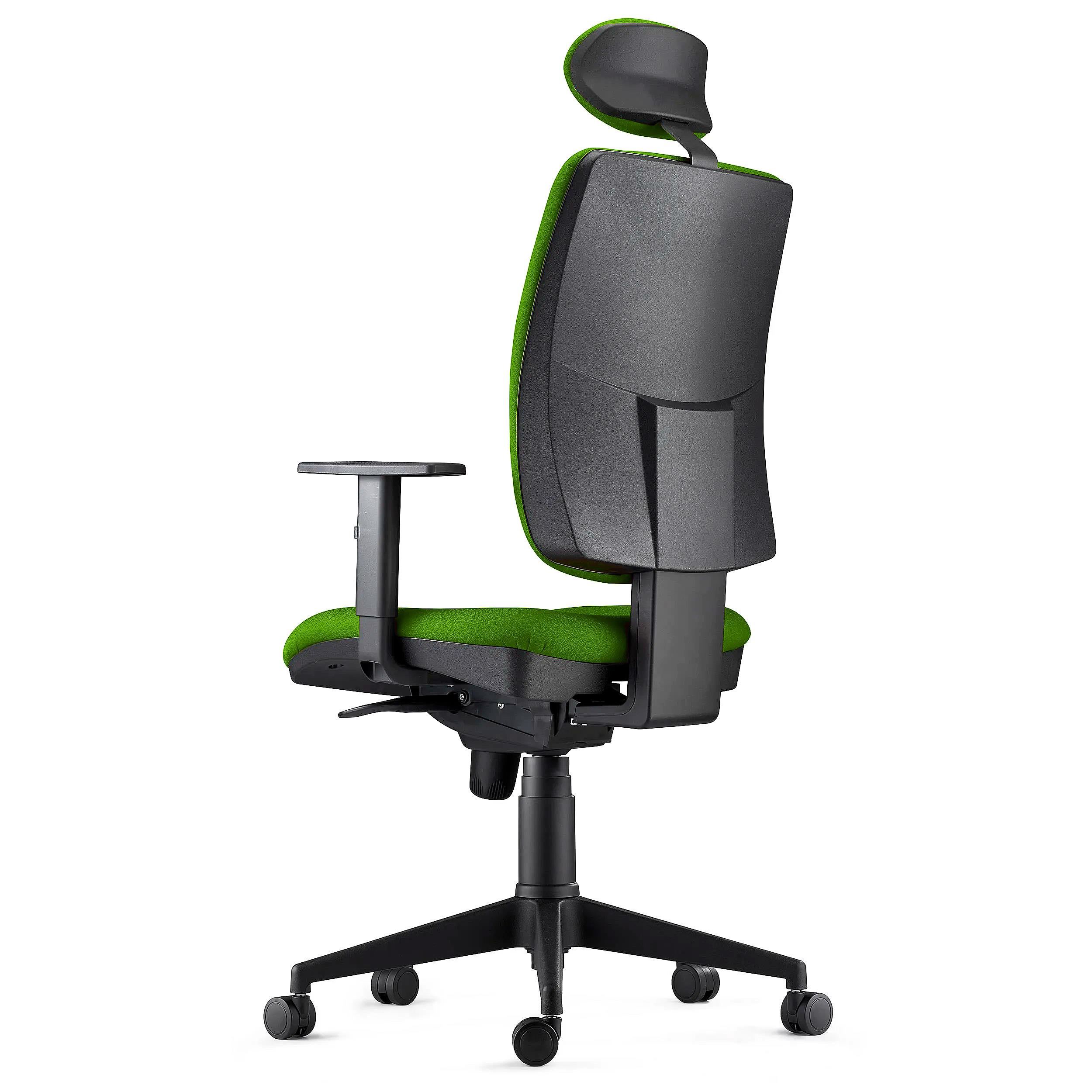 Lo schienale è regolabile in altezza ed è reclinabile tramite il sistema di reclinazione sincronizzato che permette di bloccare lo schienale o di lasciarlo libero a seconda delle esigenze del momento. In più, è dotato di un comodo poggiatesta regolabile in altezza per garantire un buon sostegno della nuca.