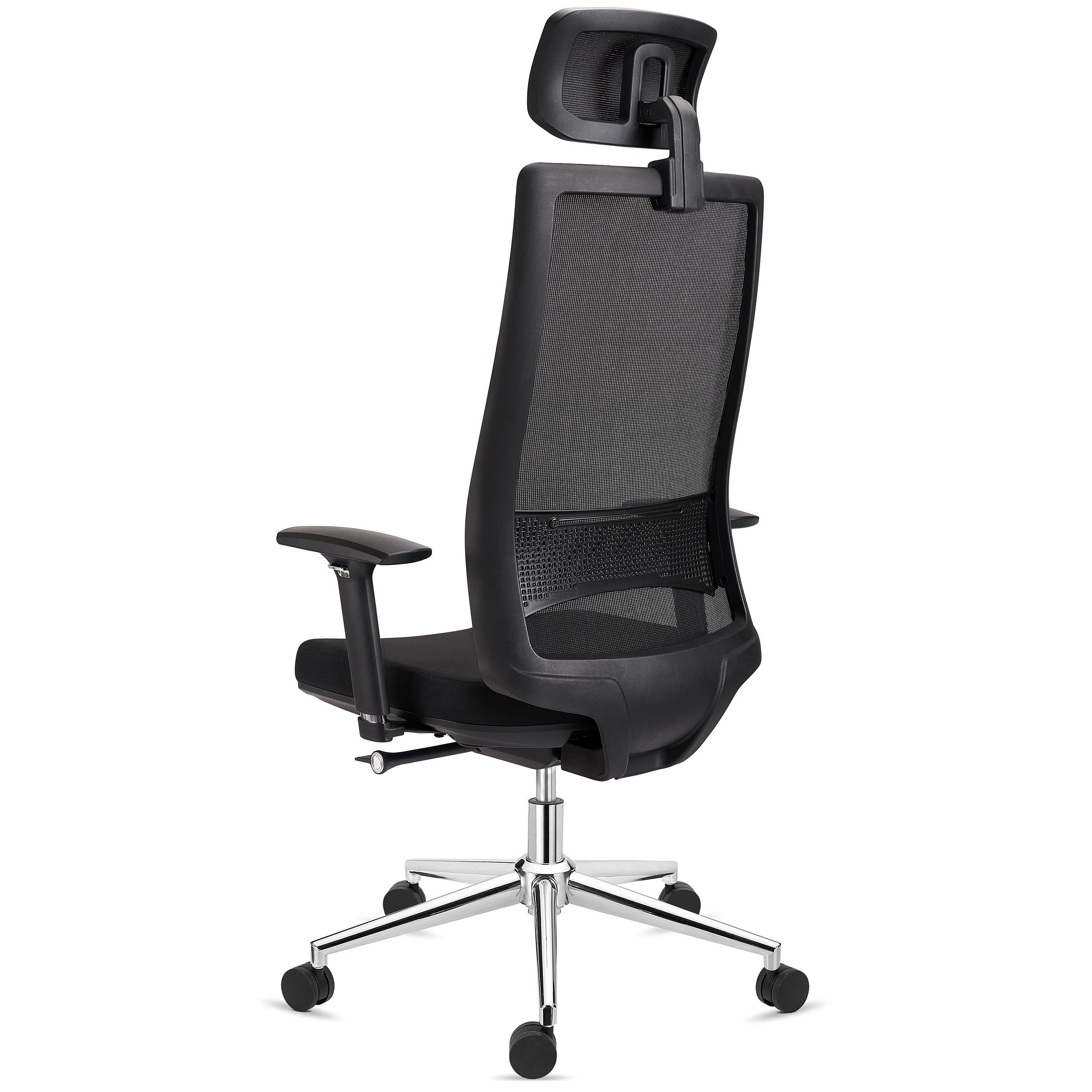 • Schienale alto, in rete e con supporto lombare