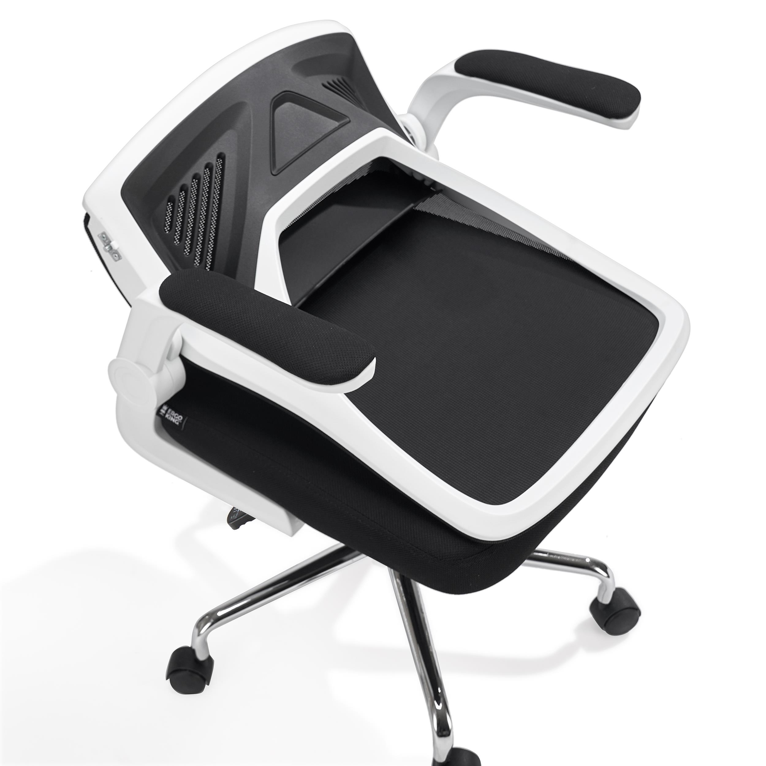 Come se non bastasse, è anche un modello salvaspazio: se la tua scrivania è troppo bassa oppure non hai più bisogno di usare la sedia, potrai abbattere i braccioli e piegare lo schienale all'occorrenza. Lo stesso infatti ti offre la possibilità di essere piegato sopra il sedile così da poter riporre la sedia sotto la scrivania per esempio, senza essere di intralcio.