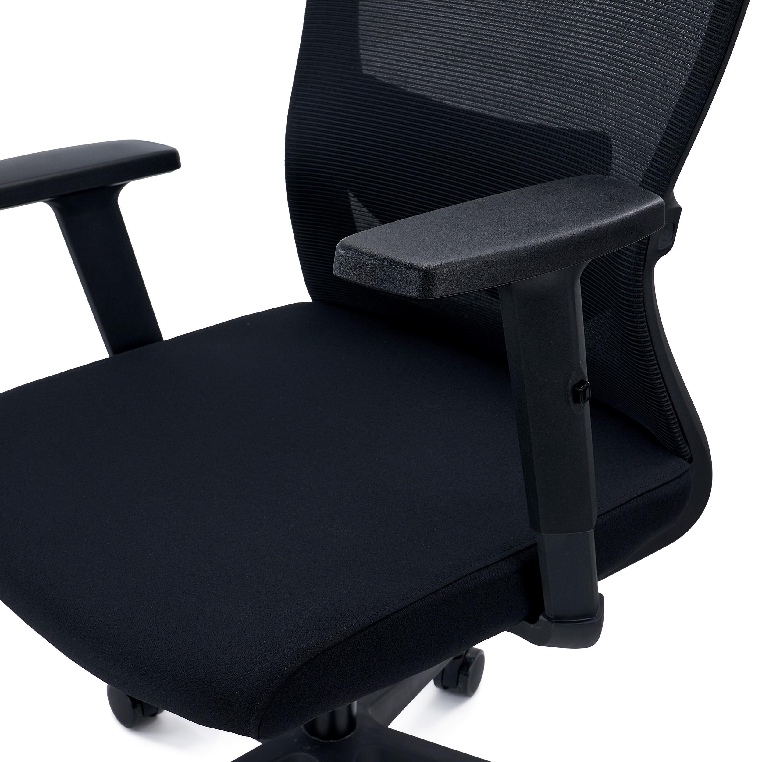 Il sedile è rivestito in tessuto traspirante ed è comodamente imbottito caratteristiche che non possono mancare in una buona seduta di utilizzo quotidiano. Per un maggiore sostegno i braccioli sono stabili e regolabili in altezza in modo da poter adattare la seduta a diversi utenti o piani di lavoro.