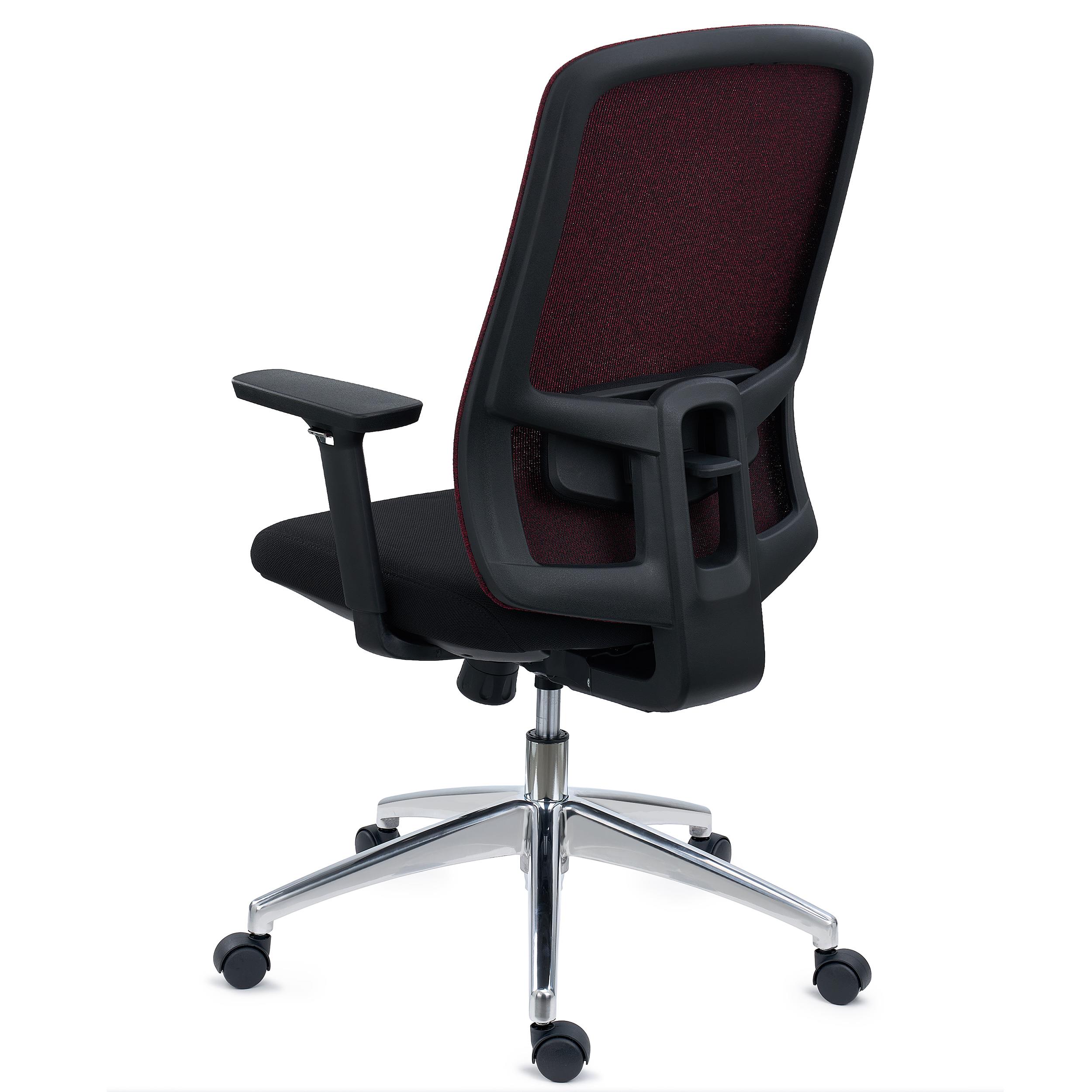 Lo schienale, in rete traspirante, è dotato di utile supporto lombare regolabile in altezza. Il supporto lombare, unito alla curvatura dello schienale, è indispensabile per evitare fastidiosi dolori alla schiena e per poter usare la sedia in maniera intensiva senza compromettere la postura.