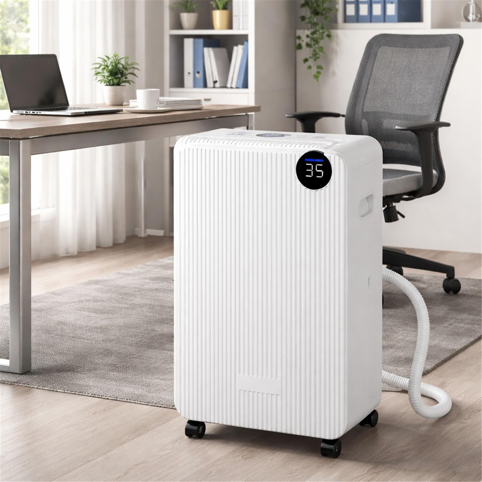 Deumidificatore per ufficio AEROSEC, modello ideale per mantenere l'ufficio sempre confortevole e produttivo grazie alle sue alte prestazioni. Questo deumidificatore riduce efficacemente l’umidità, migliorando la qualità dell’aria e proteggendo documenti e dispositivi elettronici. Silenzioso e dal design moderno, si integra perfettamente in qualsiasi ambiente professionale.