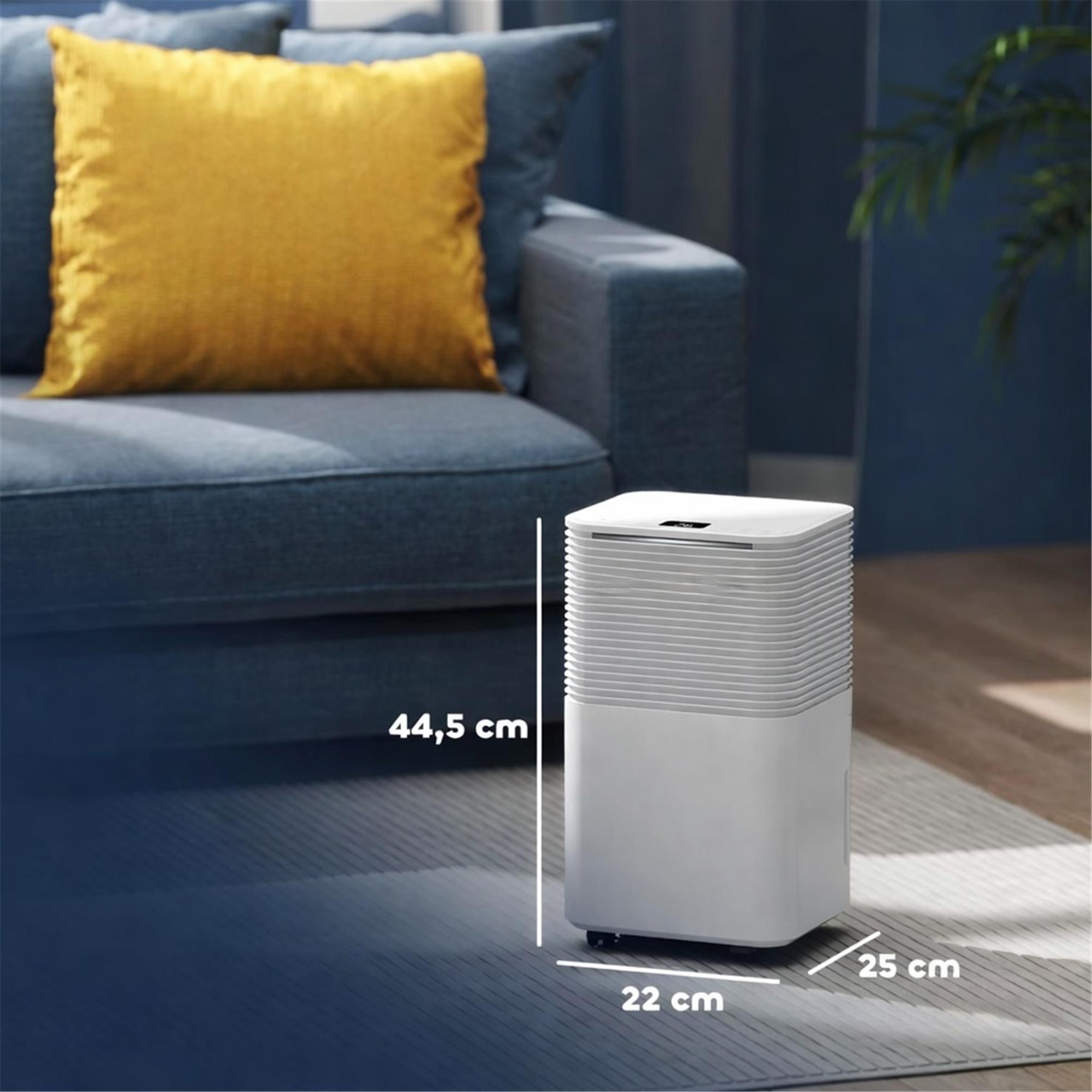 Questo deumidificatore è adatto per una superficie massima di 12 m², ha un serbatoio da 2 litri ed elimina fino a 10 litri d'acqua al giorno. È dotato di un filtro rimovibile e grazie al suo funzionamento è in grado di movimentare fino a 100 m³/h di aria, garantendo una efficace riduzione dell'umidità nell'ambiente.