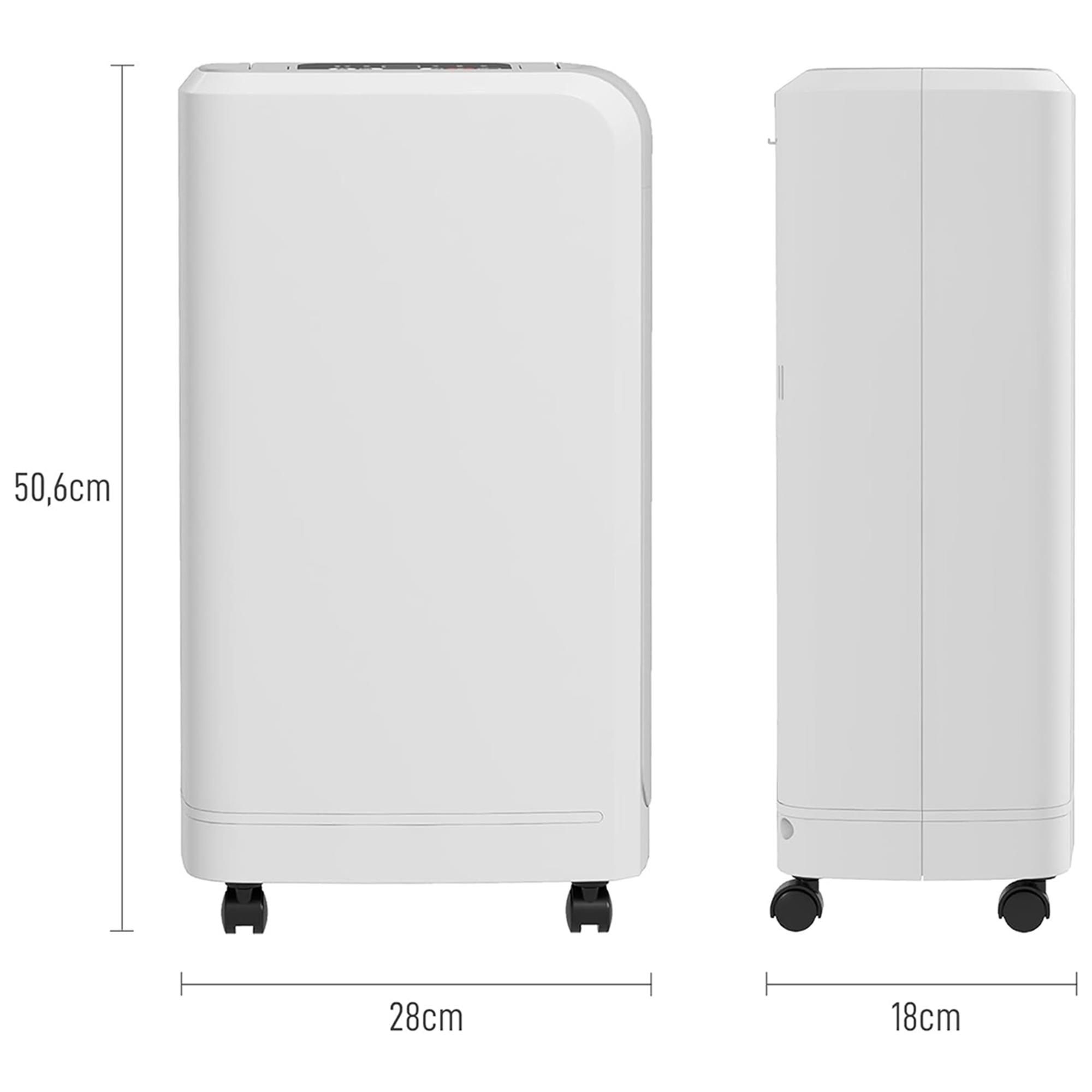 Questo deumidificatore è adatto per una superficie di 13-18 m², ha un serbatoio da 0,8 litri ed elimina fino a 12 litri d'acqua al giorno. È dotato di un filtro rimovibile e lavabile per assicurare una manutenzione facile e pratica.