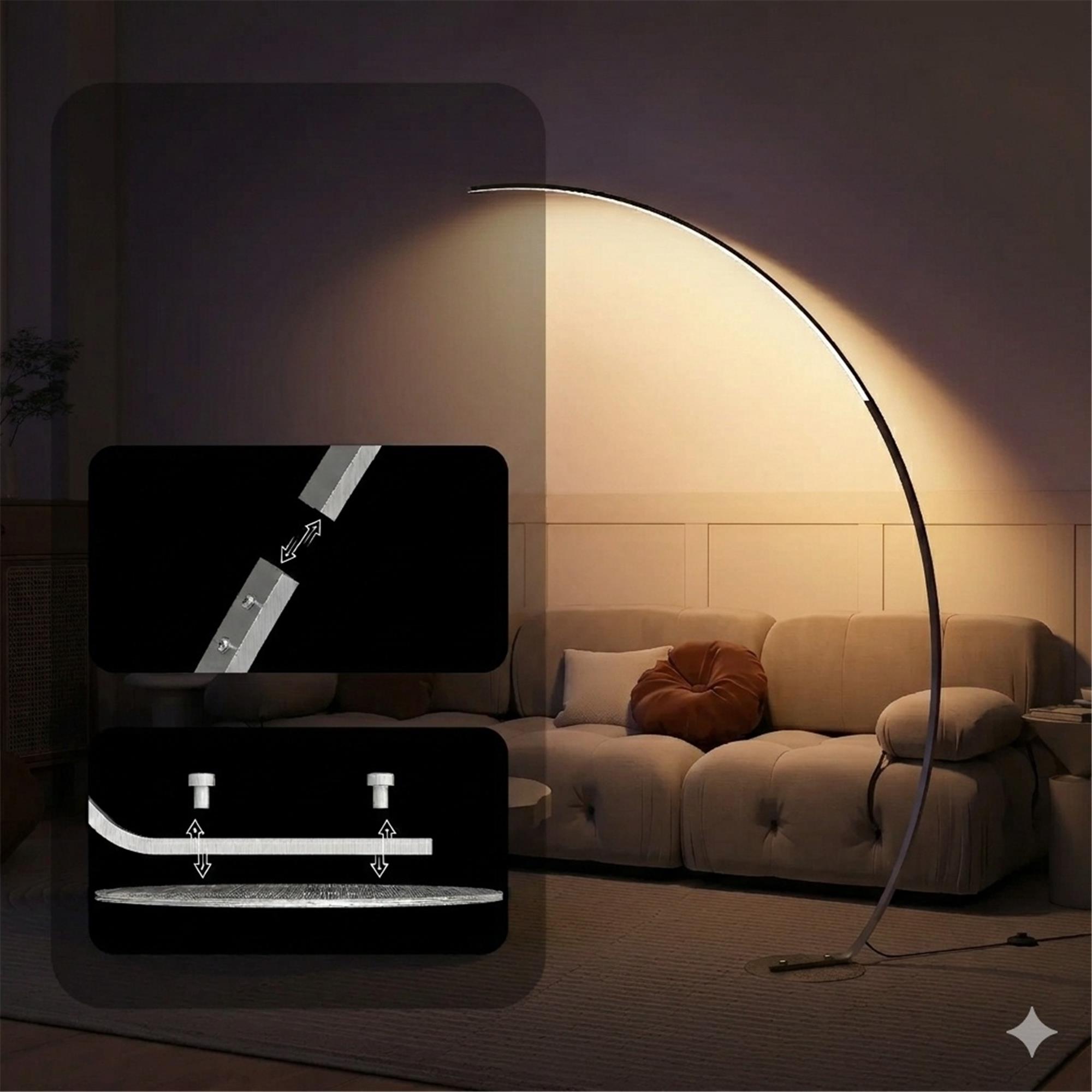 Questa lampada da terra a LED emana fino a 2800 lumen con una regolazione continua della luminosità e controllo della temperatura del colore da 3000 a 6500K permettendo così di creare l'atmosfera giusta in ogni momento della giornata.