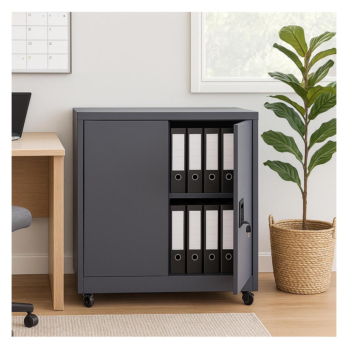 Mobiletto per Archivio BRENTON, 98x80x40cm, Serratura e Ruote con Freno, Acciaio, Grigio Scuro