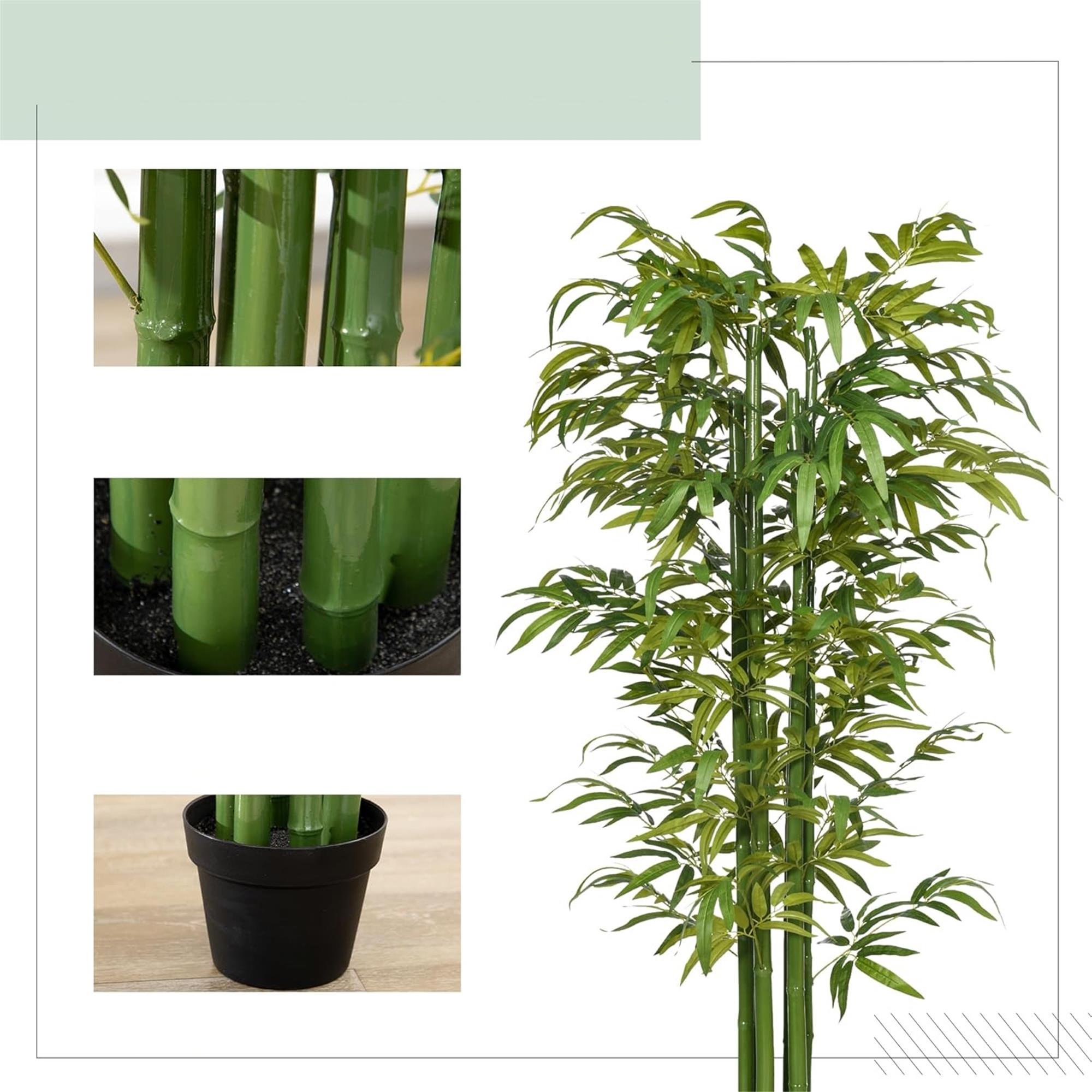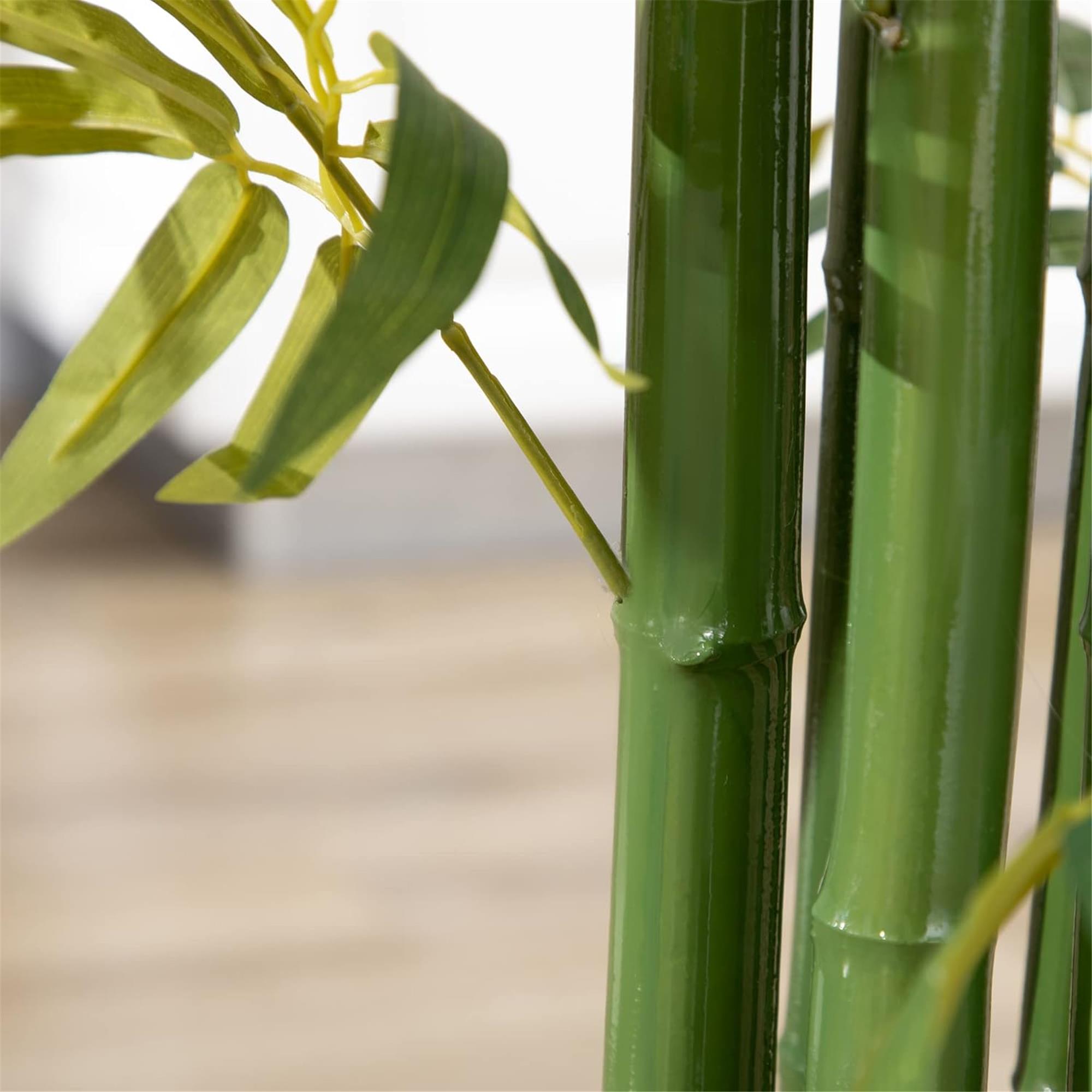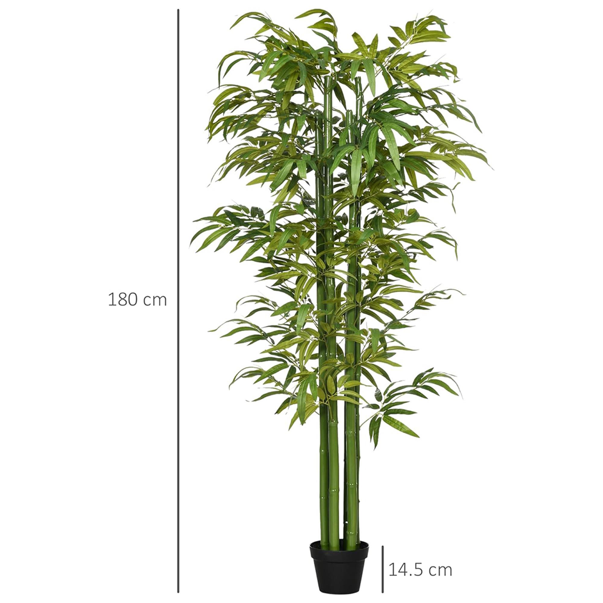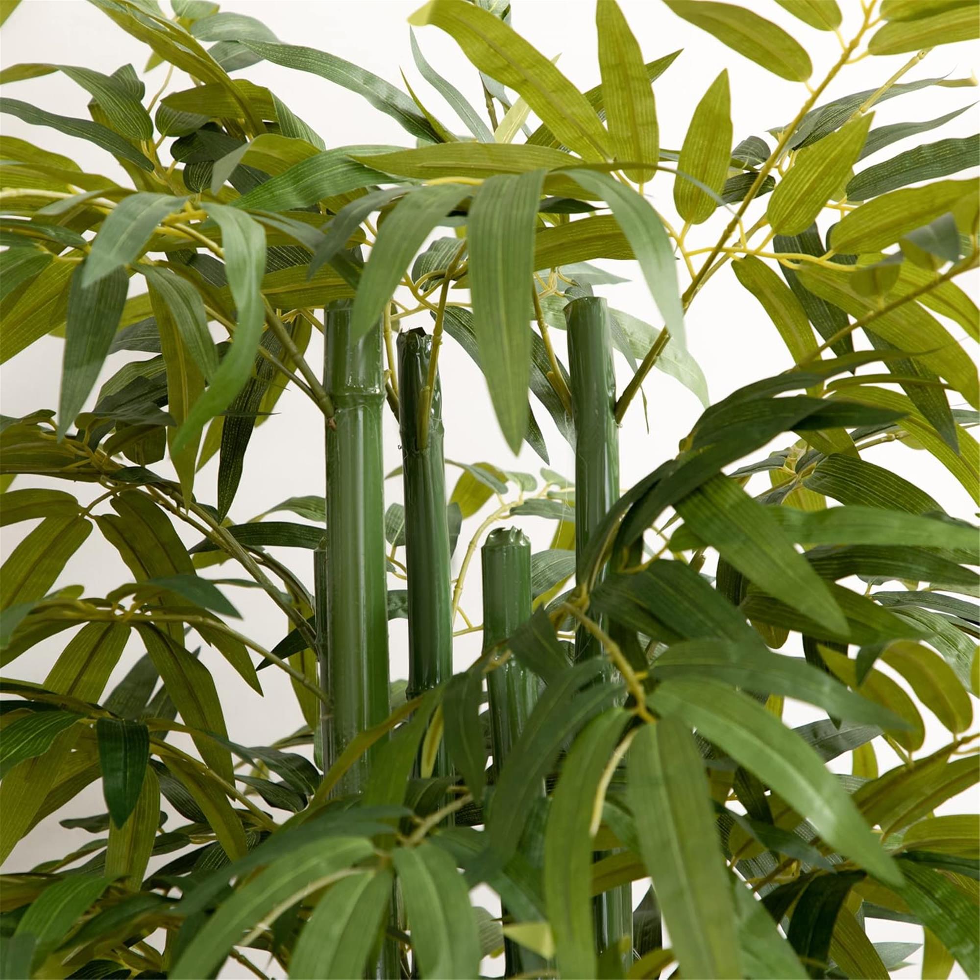 Grazie alla sua altezza di ben 180cm ed ai 18 rametti ben distribuiti, la pianta presenta una chioma ricca ma equilibrata, con foglie sottili e leggere che riproducono fedelmente l’aspetto del bambù naturale. Le diverse tonalità di verde contribuiscono a un effetto realistico.