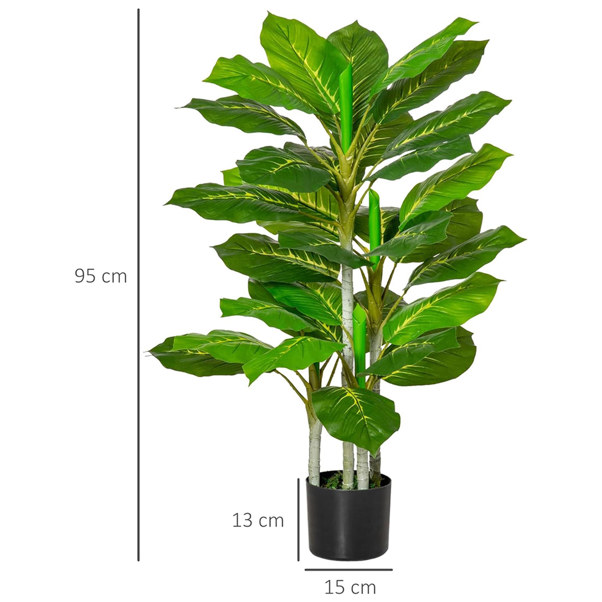 La manutenzione della pianta è ridotta al minimo: è sufficiente una rapida passata con un panno umido per rimuovere la polvere e mantenere le foglie sempre lucide e brillanti. La pianta viene fornita in un vaso nero che funge da base solida e stabile, evitando ribaltamenti accidentali. Per aumentarne il realismo può essere inserita in un coprivaso di design in metallo, ceramica o legno.