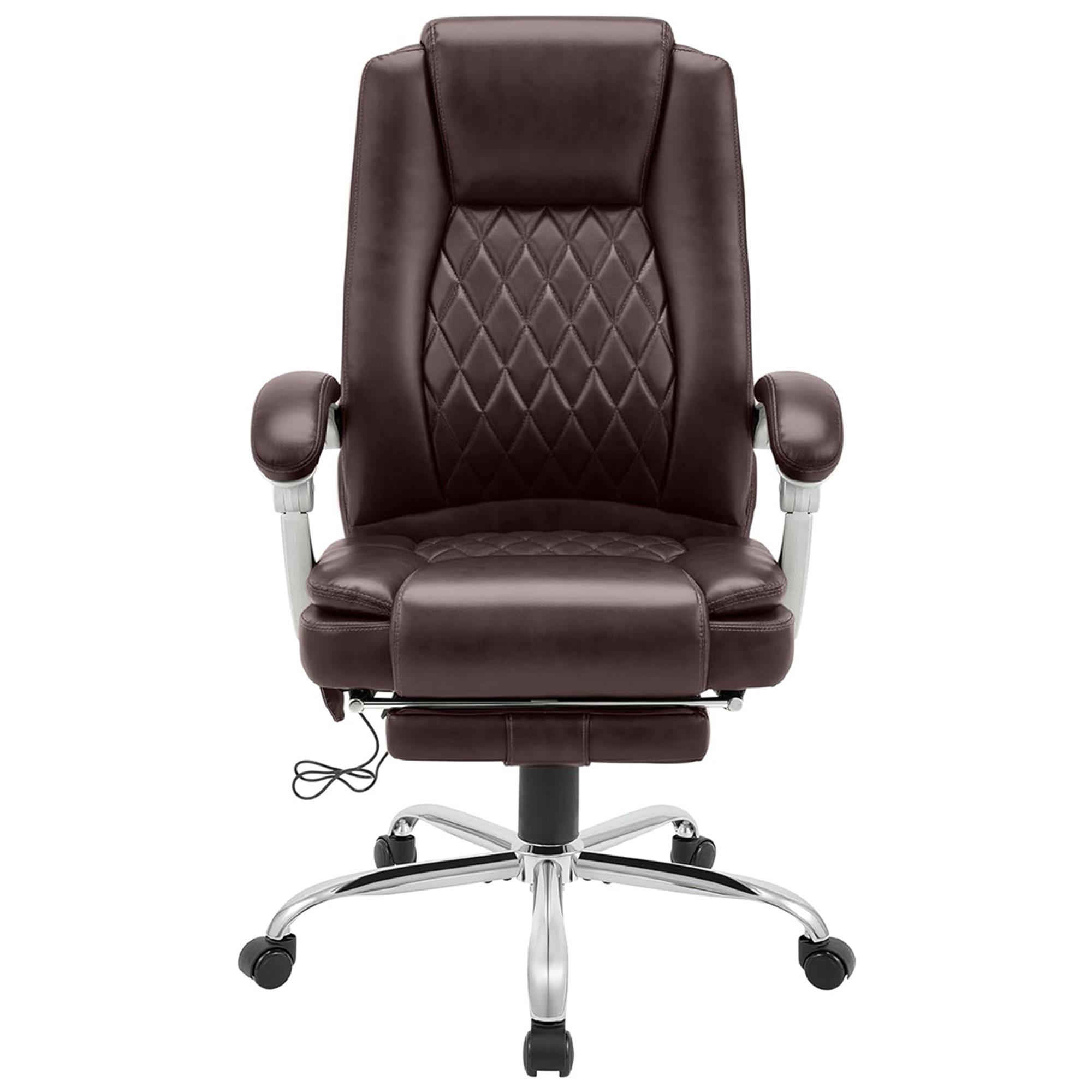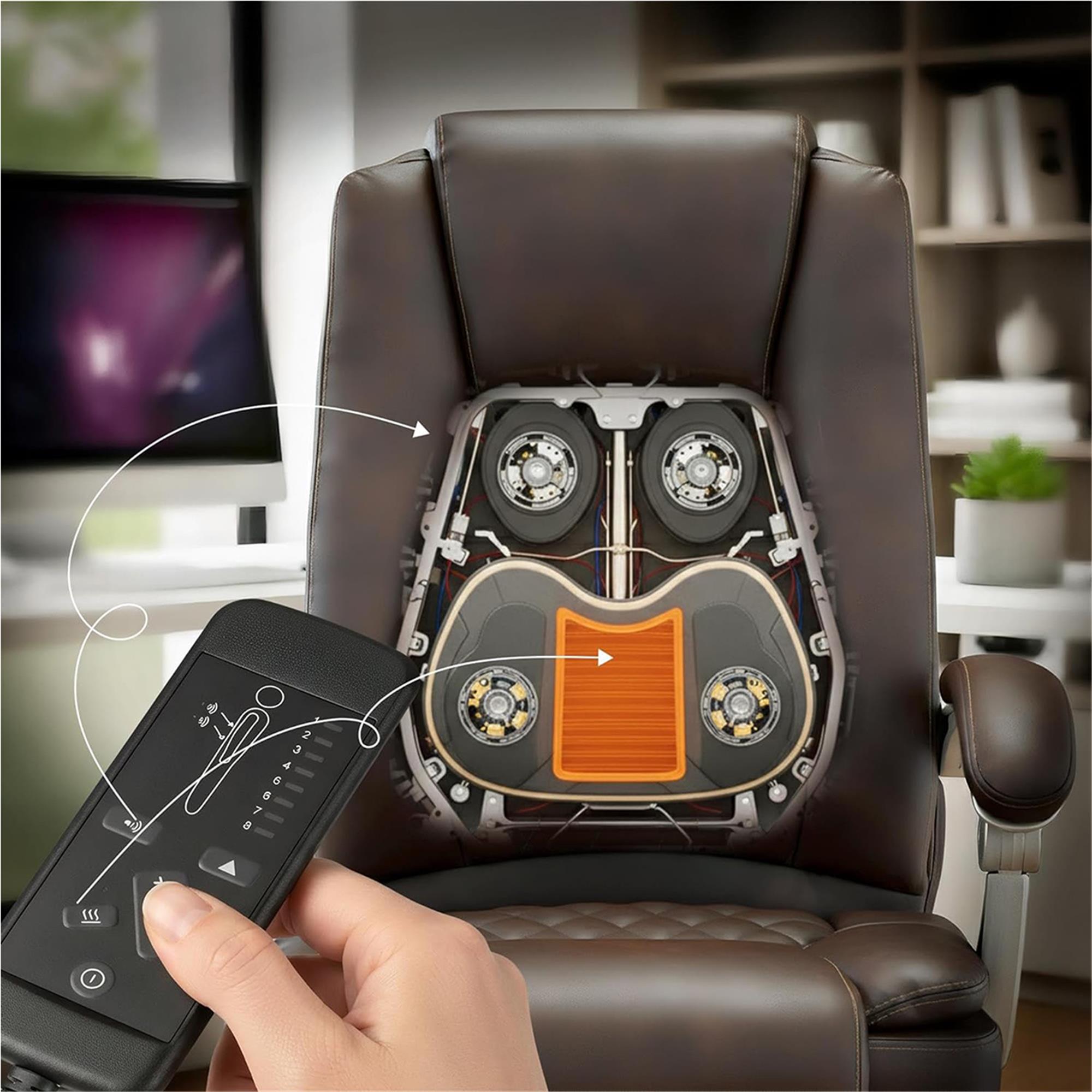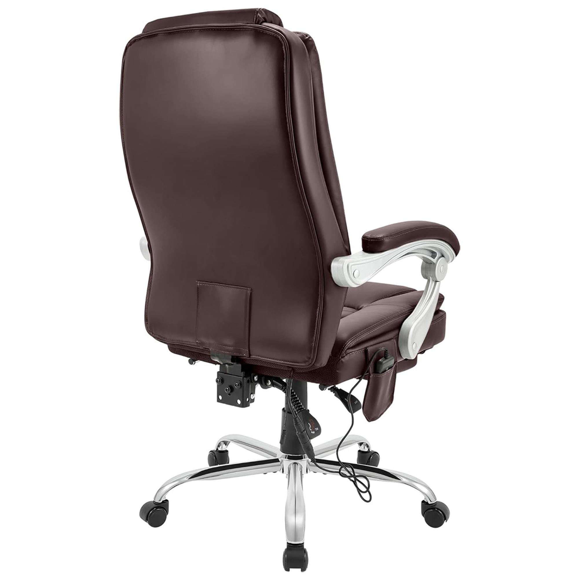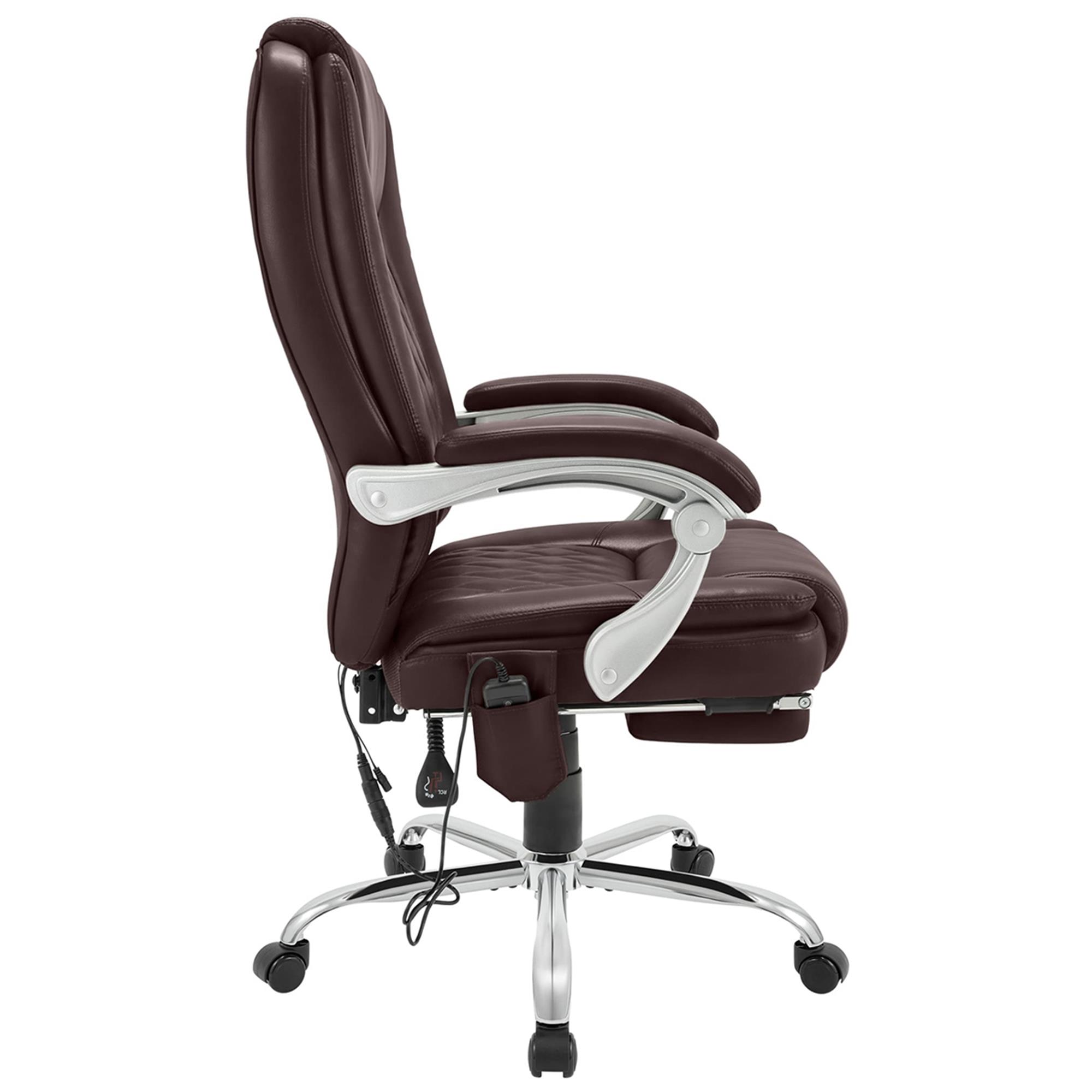 Poltrona da Ufficio CABUYA, Funzione Massaggio e Riscaldante, Reclinabile, Pelle Marrone