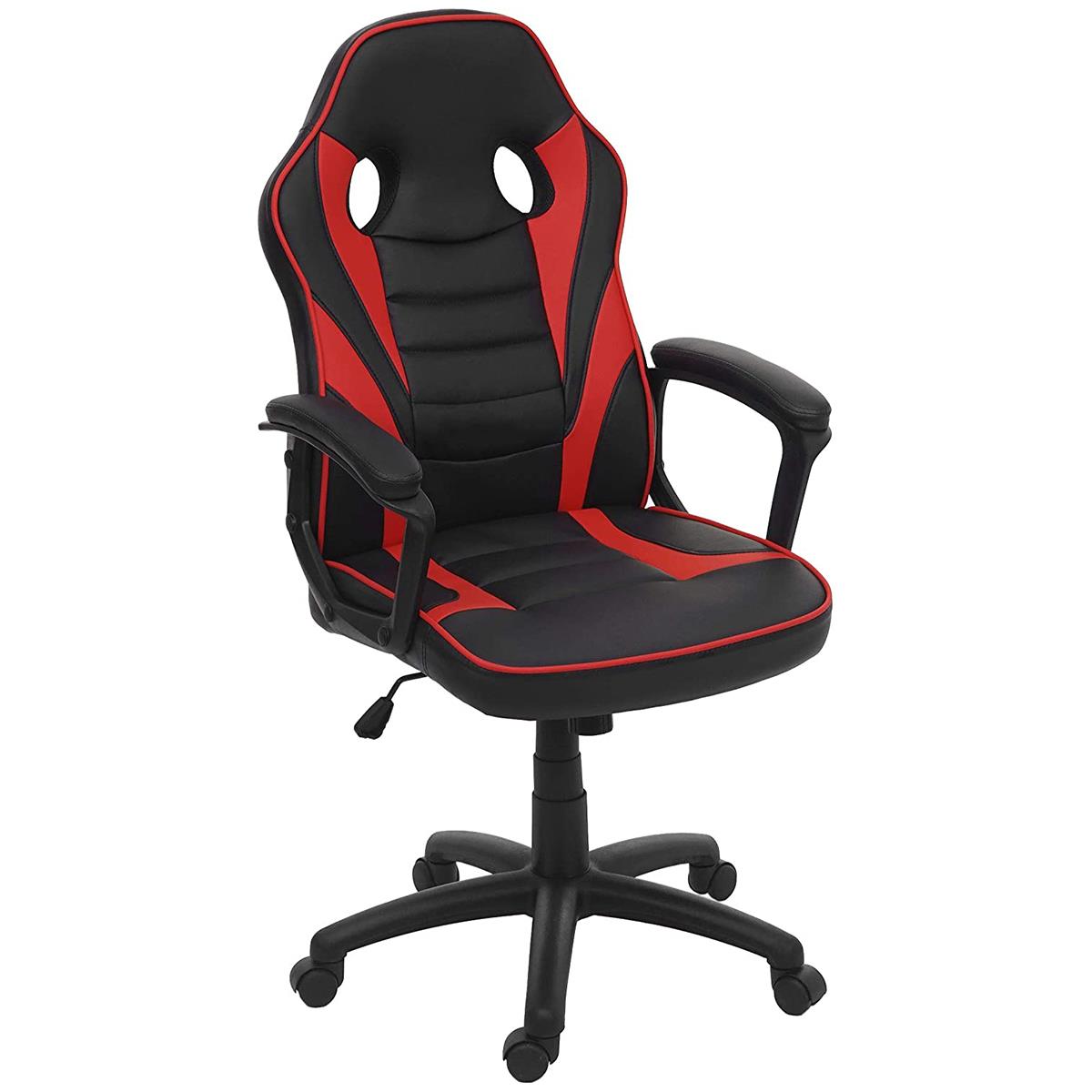 Poltrona Gaming DRIFT, Schienale Basculante, Design Sportivo, Pelle Nero/Rosso