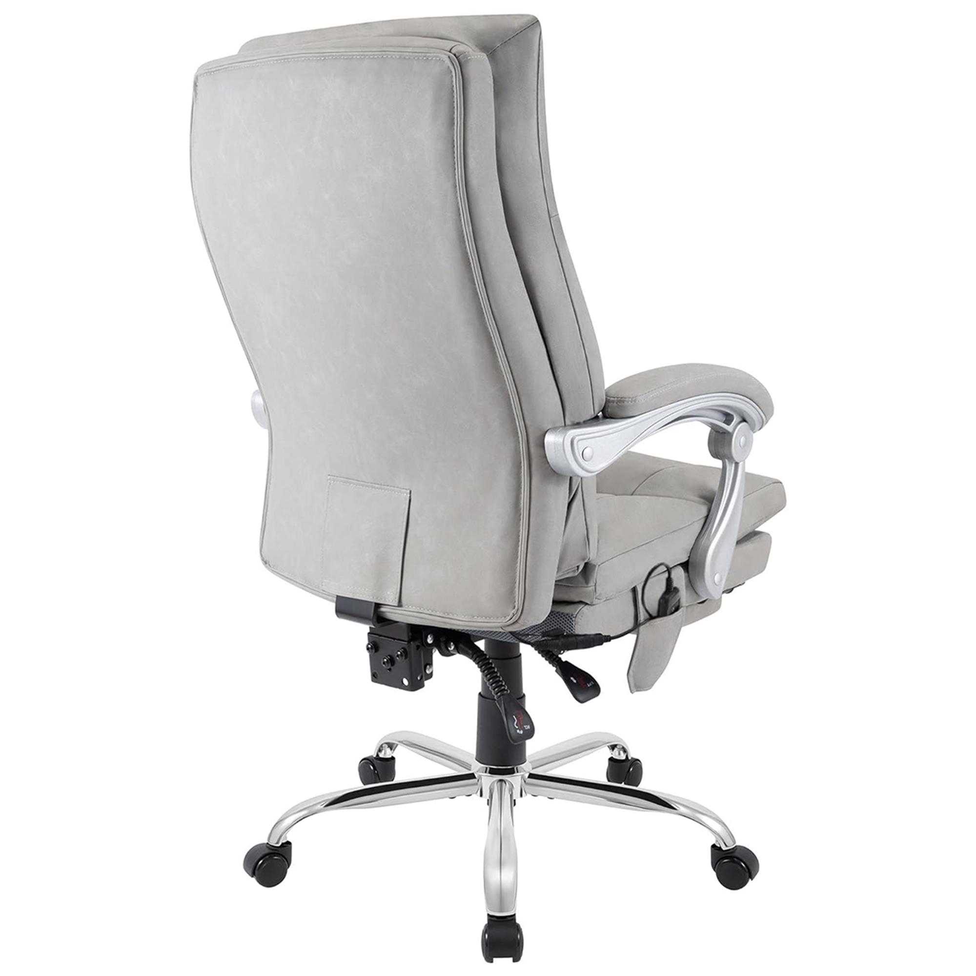 Poltrona per Ufficio SARMI, Funzione Massaggiante, Base in Metallo, Pelle Grigia