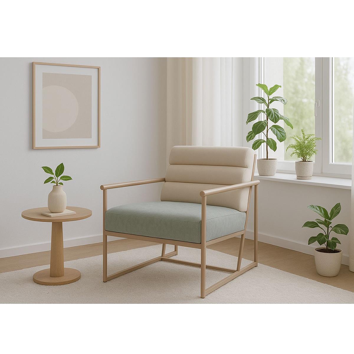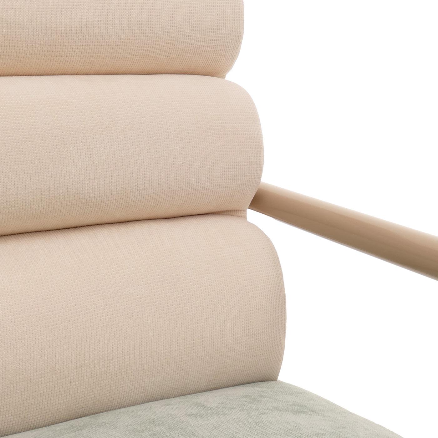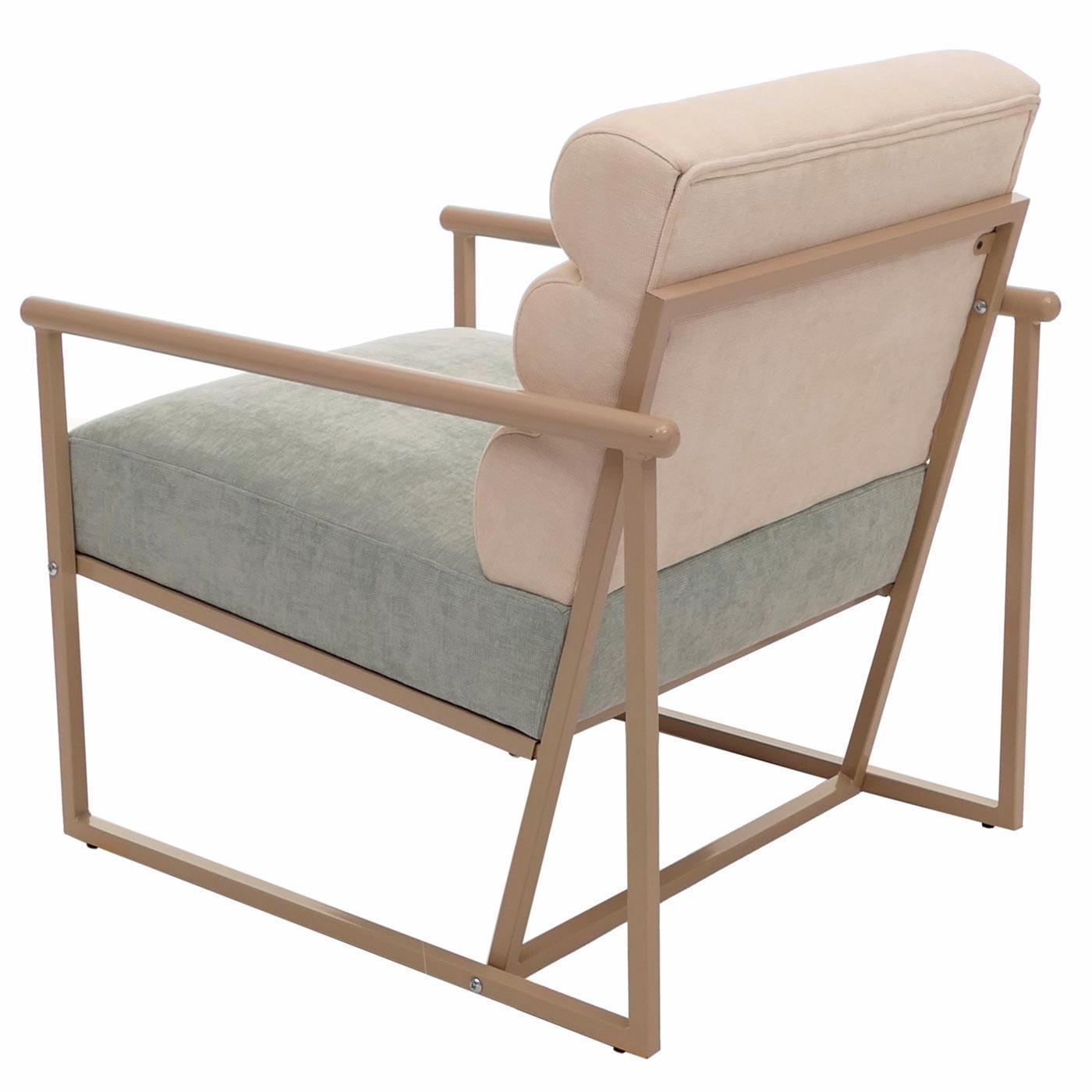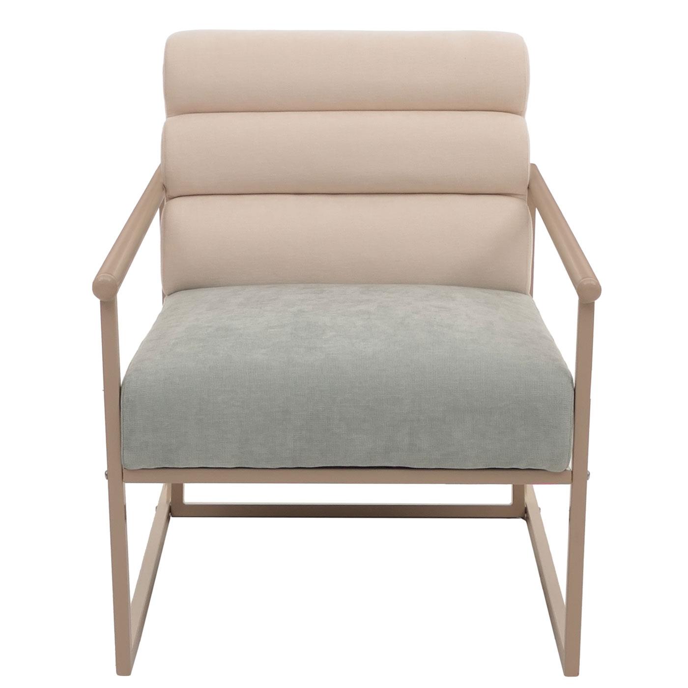 Poltroncina MILLS, Struttura in Acciaio, Super Imbottita, Tessuto Vellutato Bicolore, Beige e Grigio