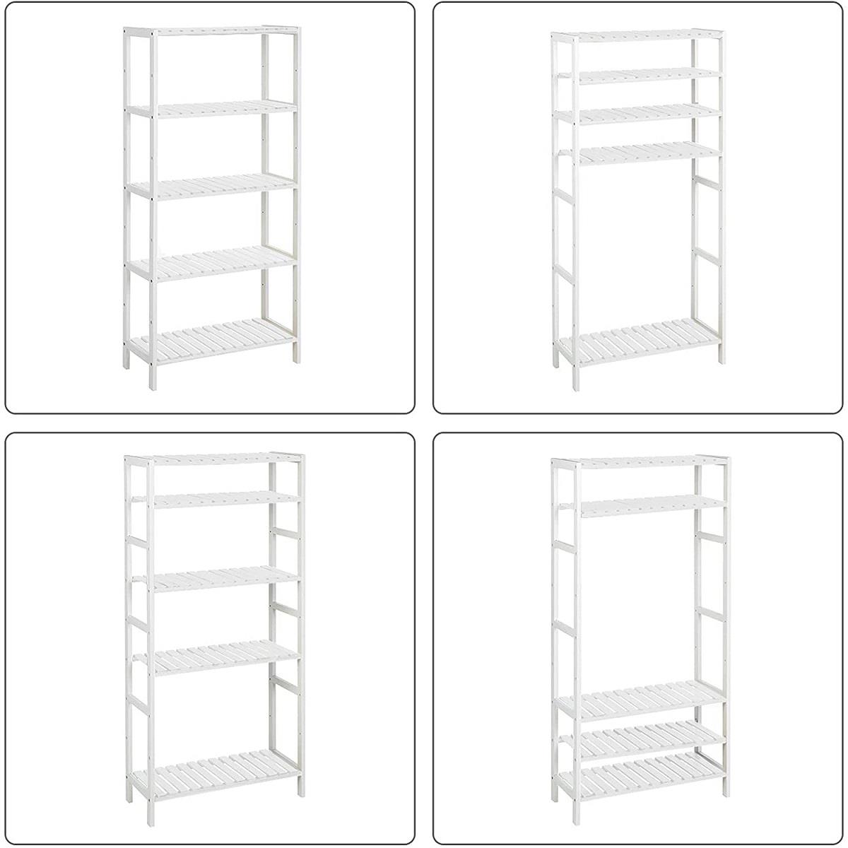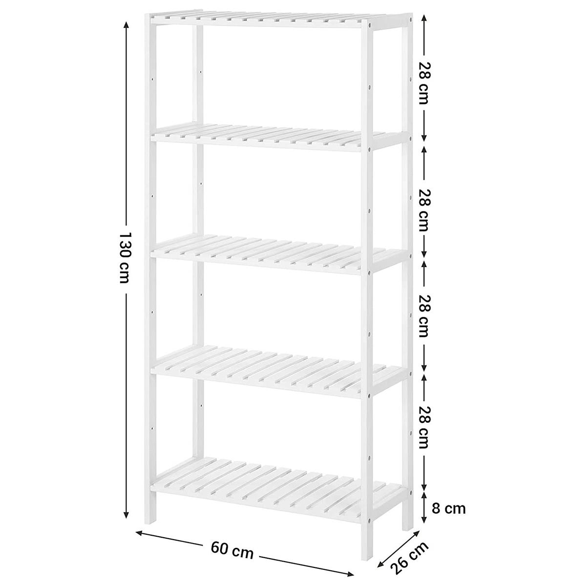 Scaffale RILEY, 5 Ripiani Regolabili, 60x26x130 cm, in Bambù Bianco