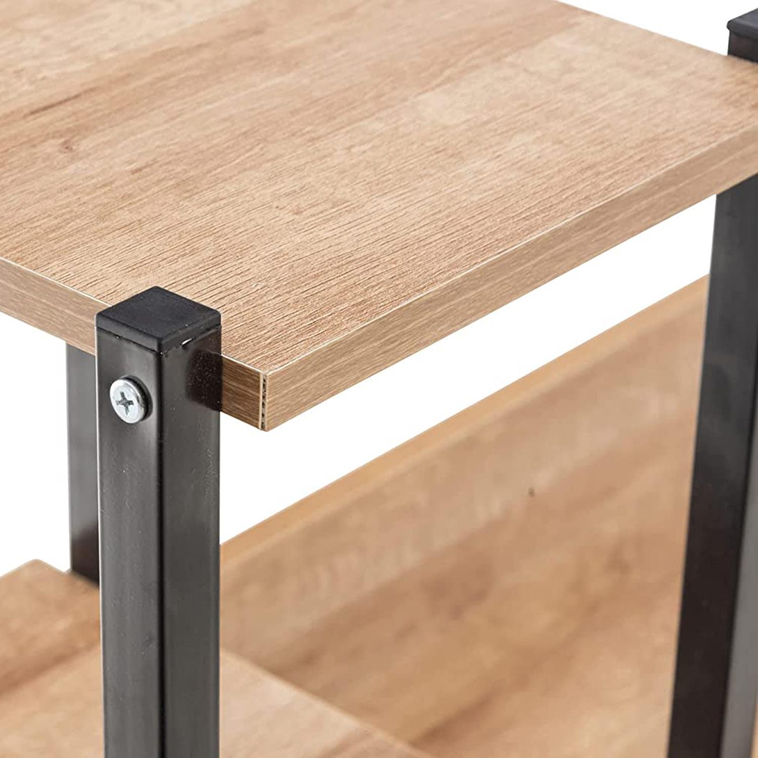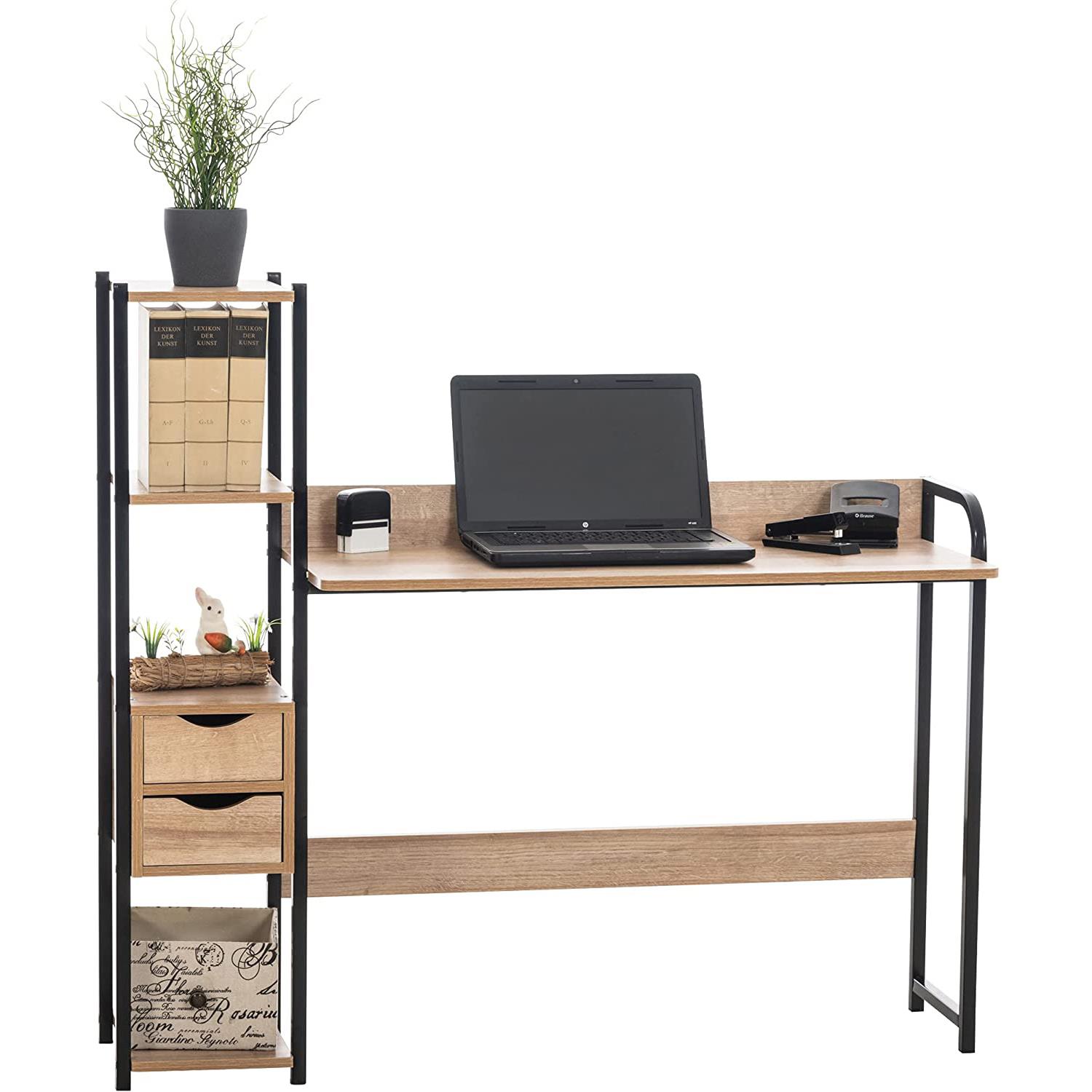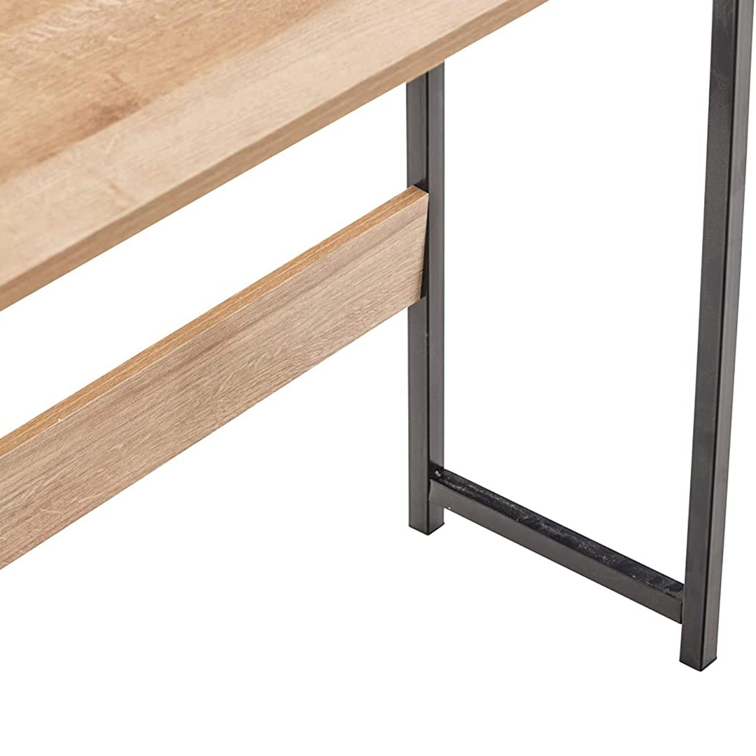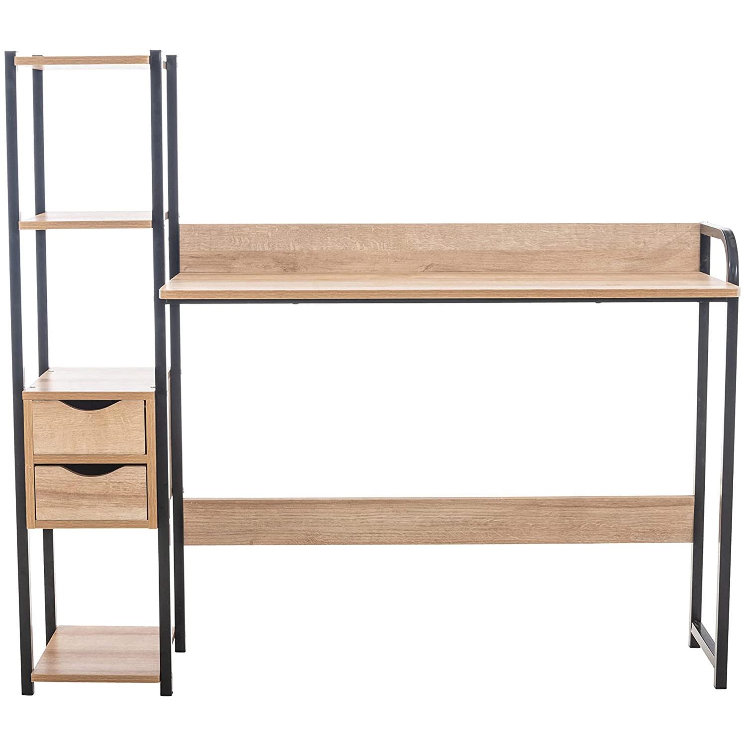 Scrivania Industrial ISIDE, Con Mensole e Cassetti, 111x124x40cm, Acciaio e Legno, Faggio
