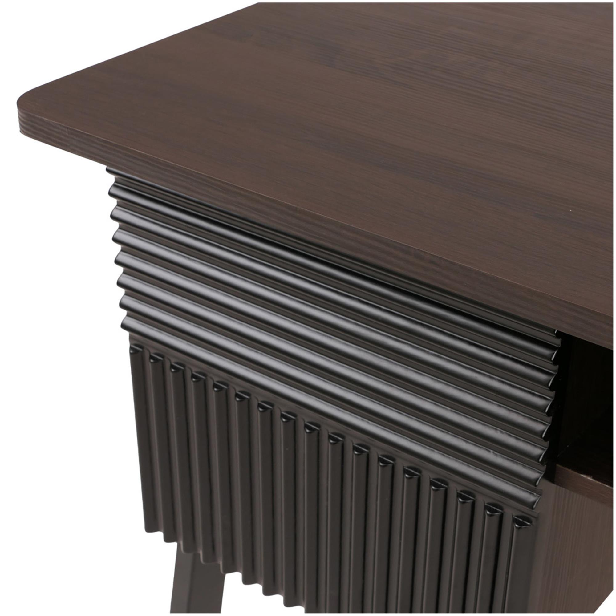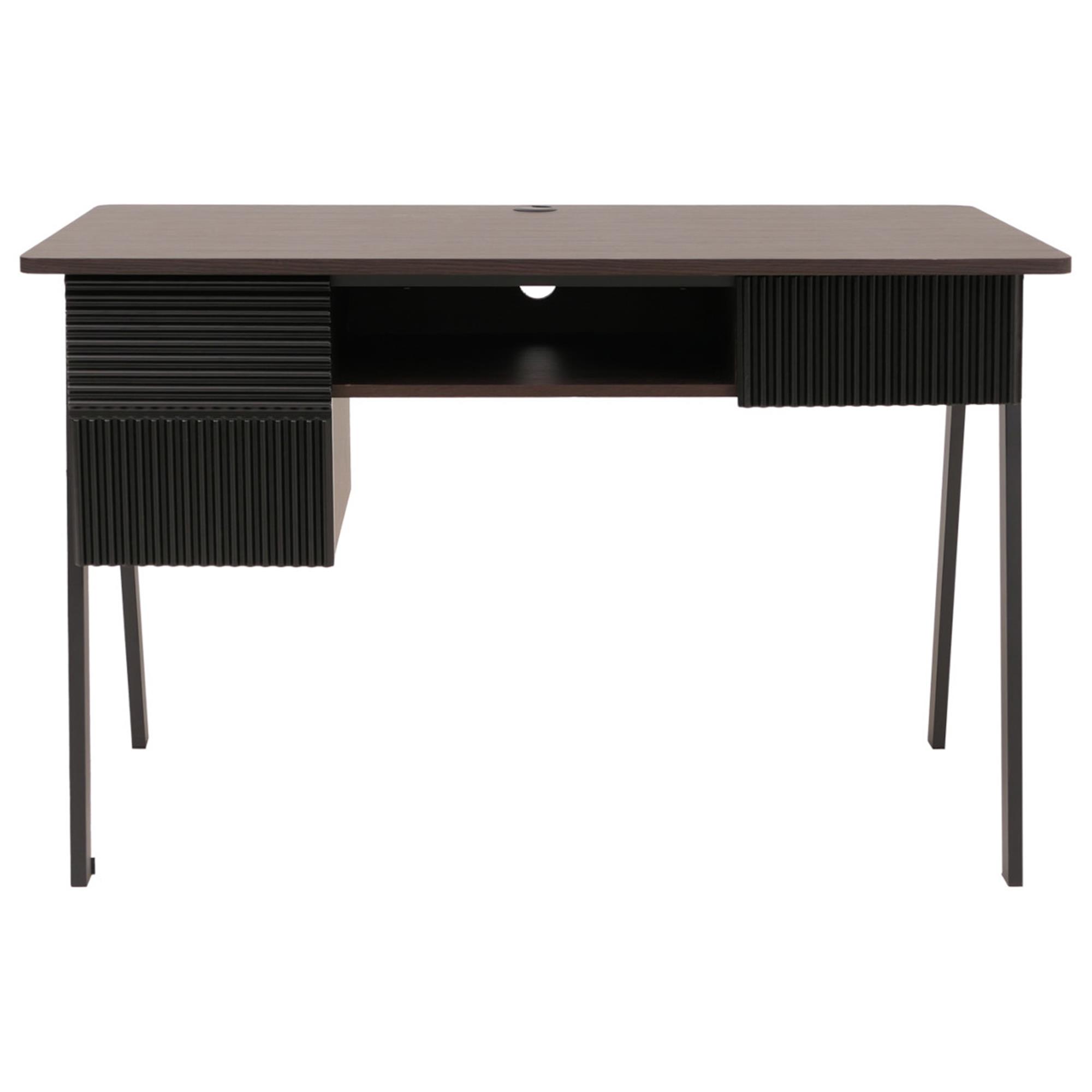 La scrivania dispone di un cassetto e di due scomparti (uno aperto e uno chiuso con anta) per riporre, ad esempio, penne e documenti così da avere sempre tutto a portata di mano. Molto particolari sono i frontali testurizzati che conferiscono un tocco elegante all'intera scrivania.