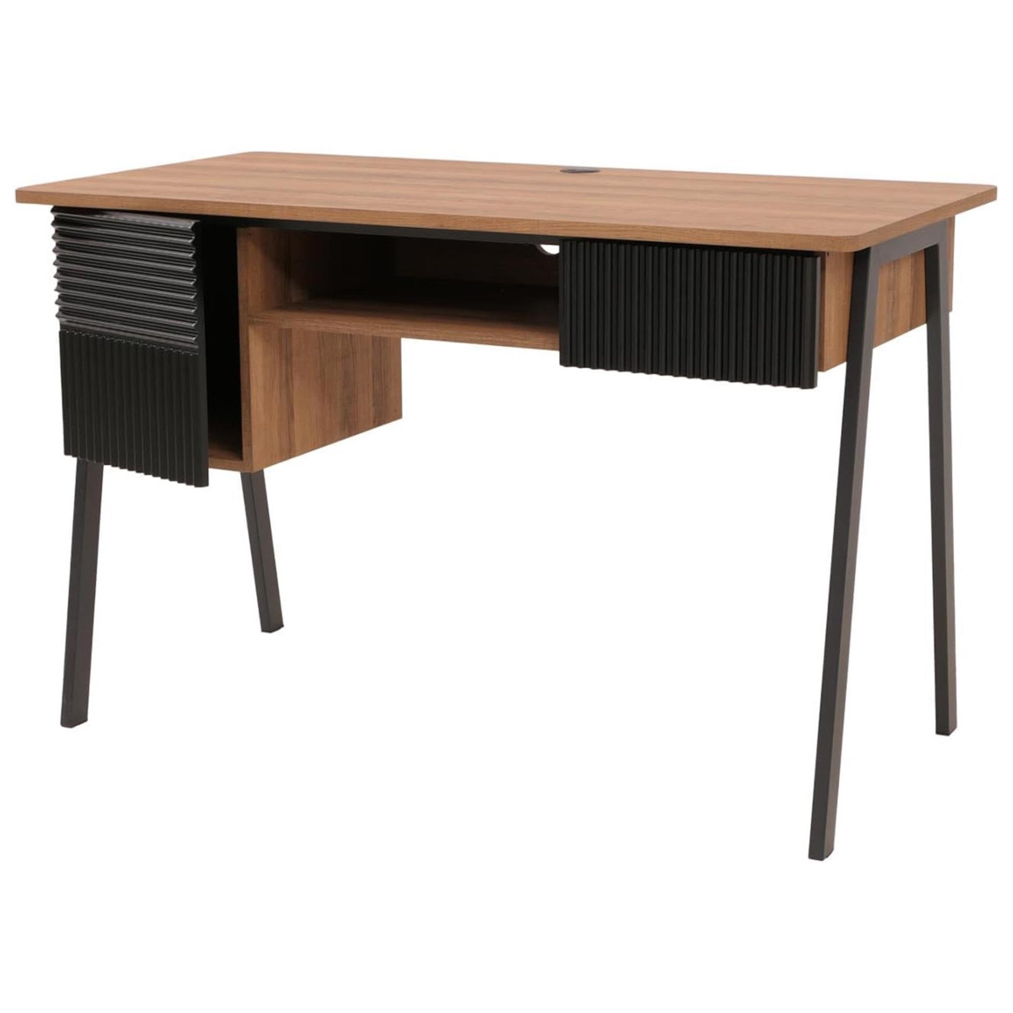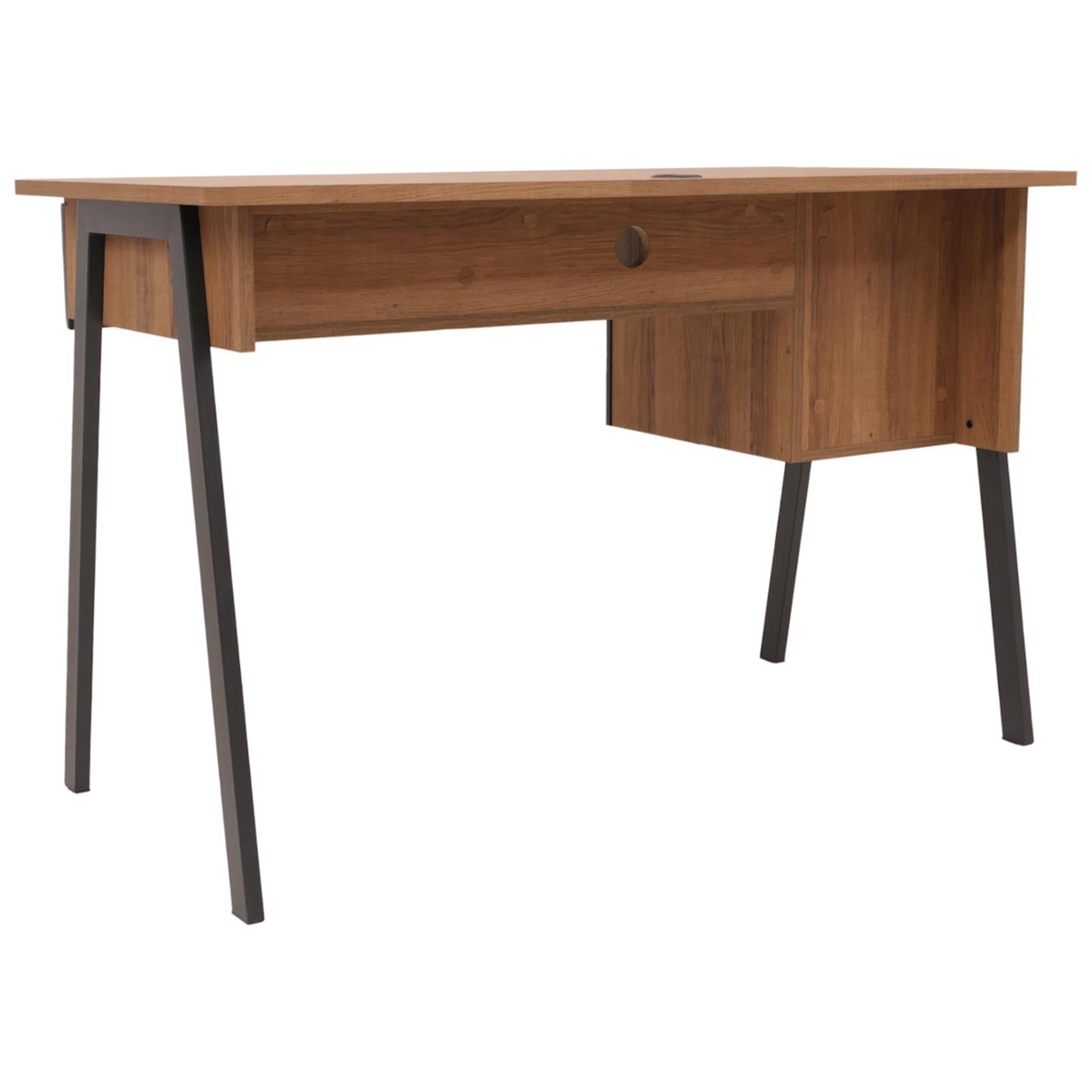 Scrivania OPAL, 2 Ripiani e 1 Cassetto, Design Moderno, 120x60cm, in Legno colore Rovere