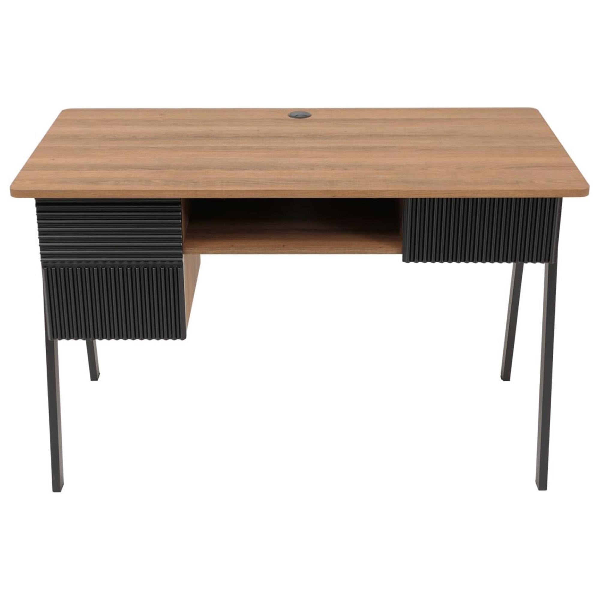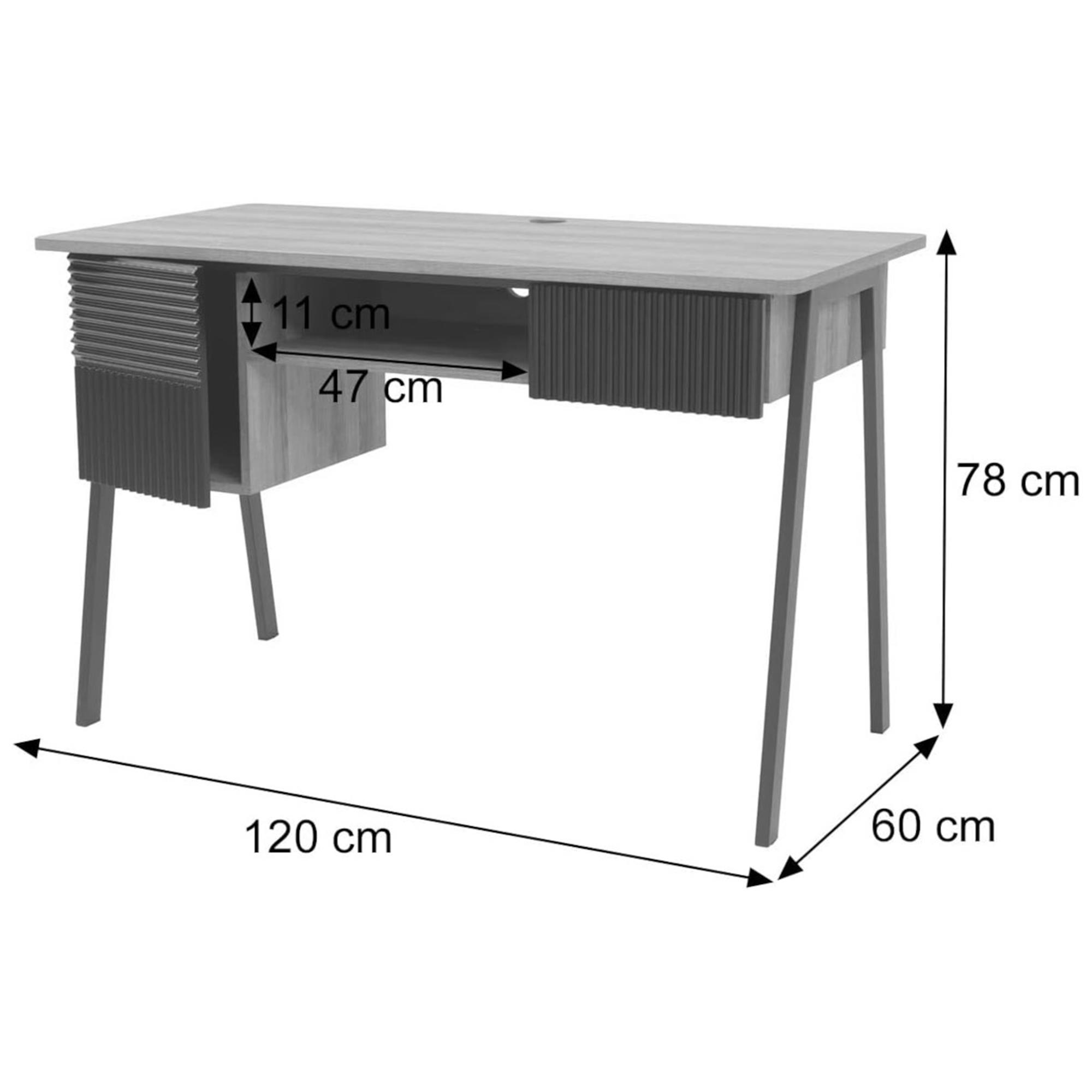 La scrivania dispone di un cassetto e di due scomparti (uno aperto e uno chiuso con anta) per riporre, ad esempio, penne e documenti così da avere sempre tutto a portata di mano. Molto particolari sono i frontali testurizzati che conferiscono un tocco elegante all'intera scrivania.