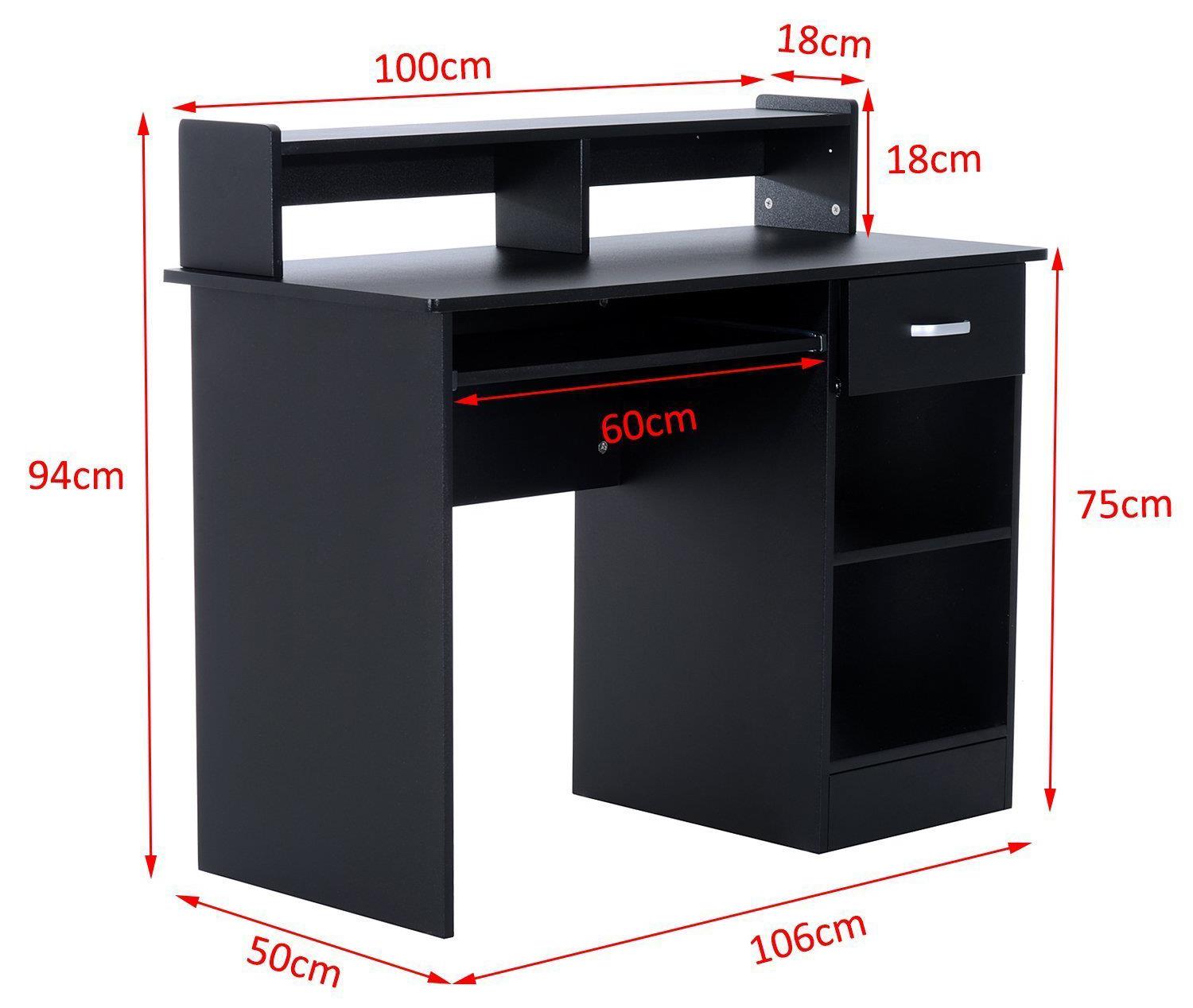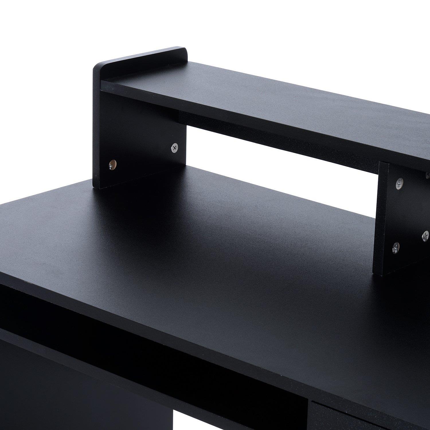 Scrivania per Computer ADEN, in Legno, Con Ripiano per Tastiera e Stampante, Color Nero