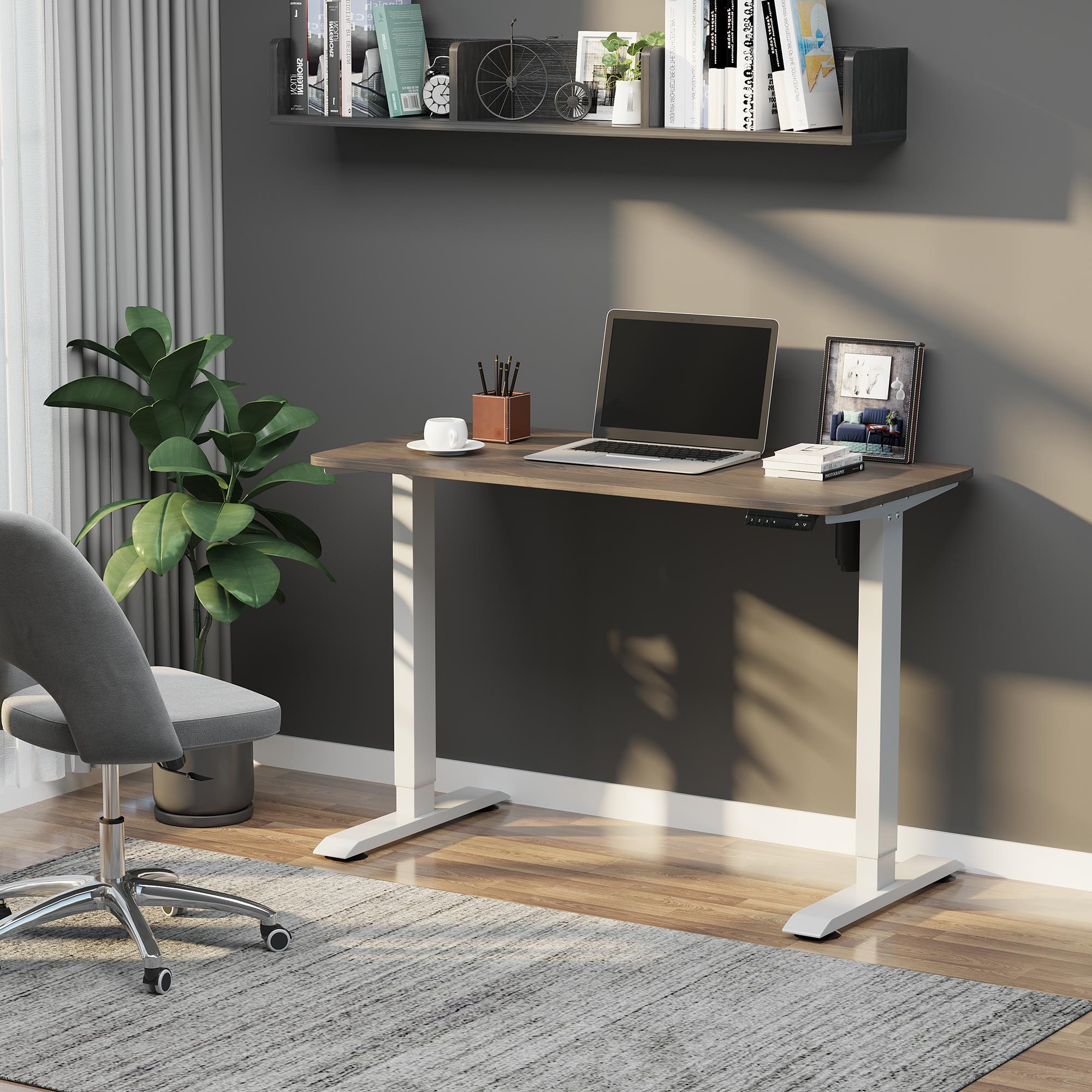 Scrivania per PC NAIKO, 120x60cm, Regolabile in Altezza, Telaio in Acciaio, Colore Rovere e Bianco