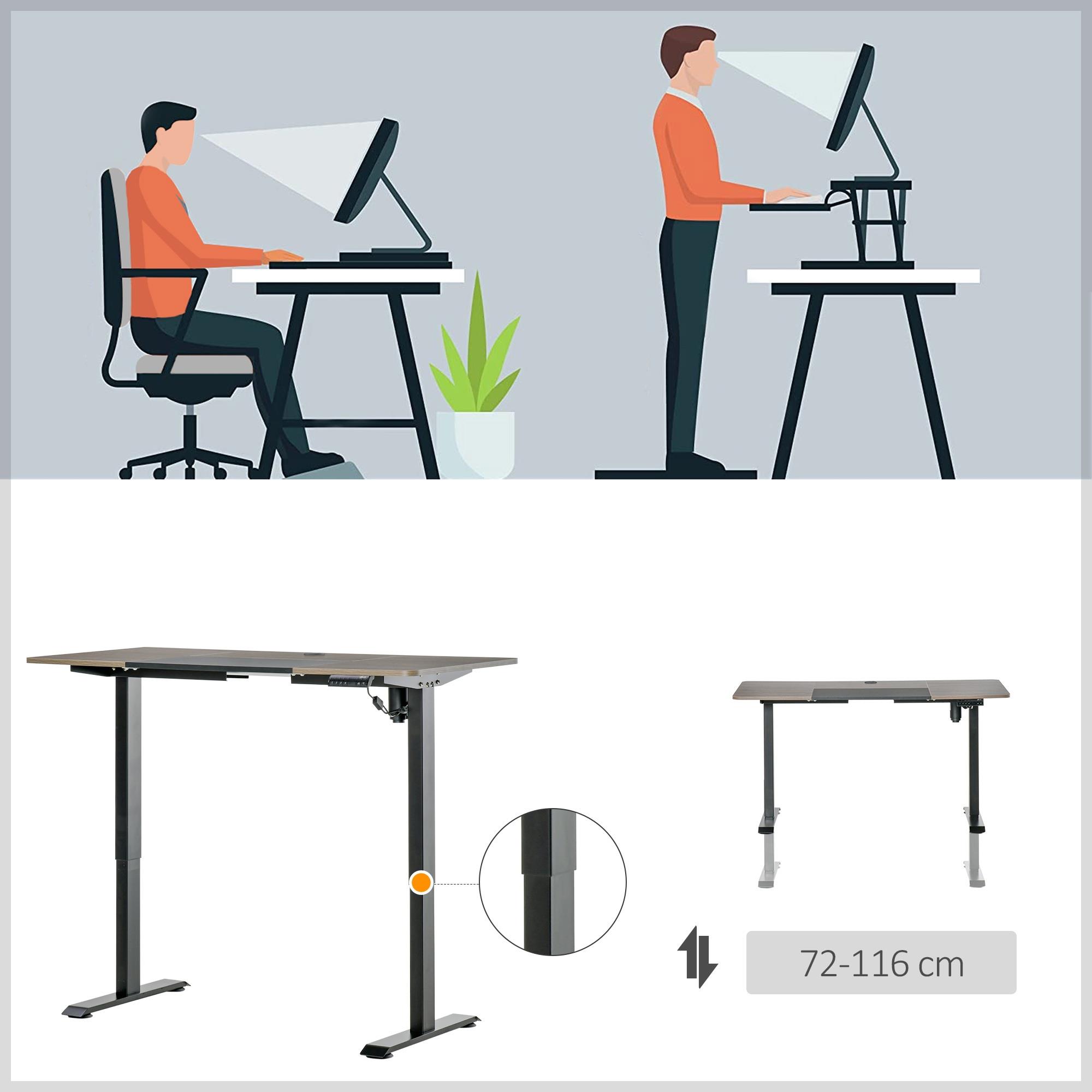 Scrivania per PC NAIKO, 140x70cm, Regolabile in Altezza, Telaio in Acciaio, Colore Teak e Nero