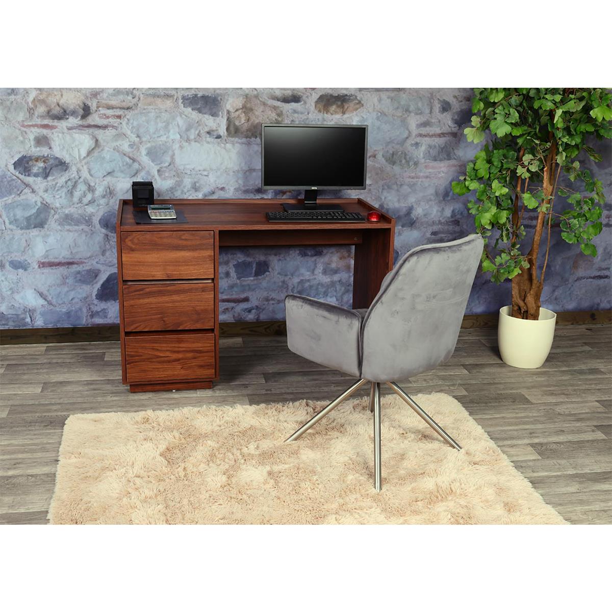 Scrivania per PC NORWAY, Elegante e Pratica, con Cassettiera, 121x60x78cm, in Legno color Noce