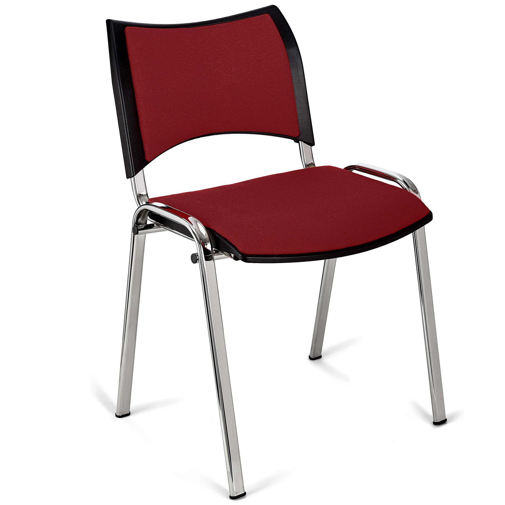 Sedia da Attesa ROMMEL, Comoda Imbottitura, Impilabile, in Tessuto Bordeaux e Gambe Cromate