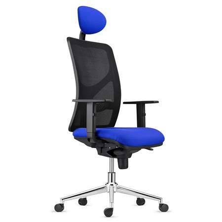 Sedia da Ufficio BAIKAL, Base Metallica, Poggiatesta, Braccioli Regolabili, In Tessuto Blu