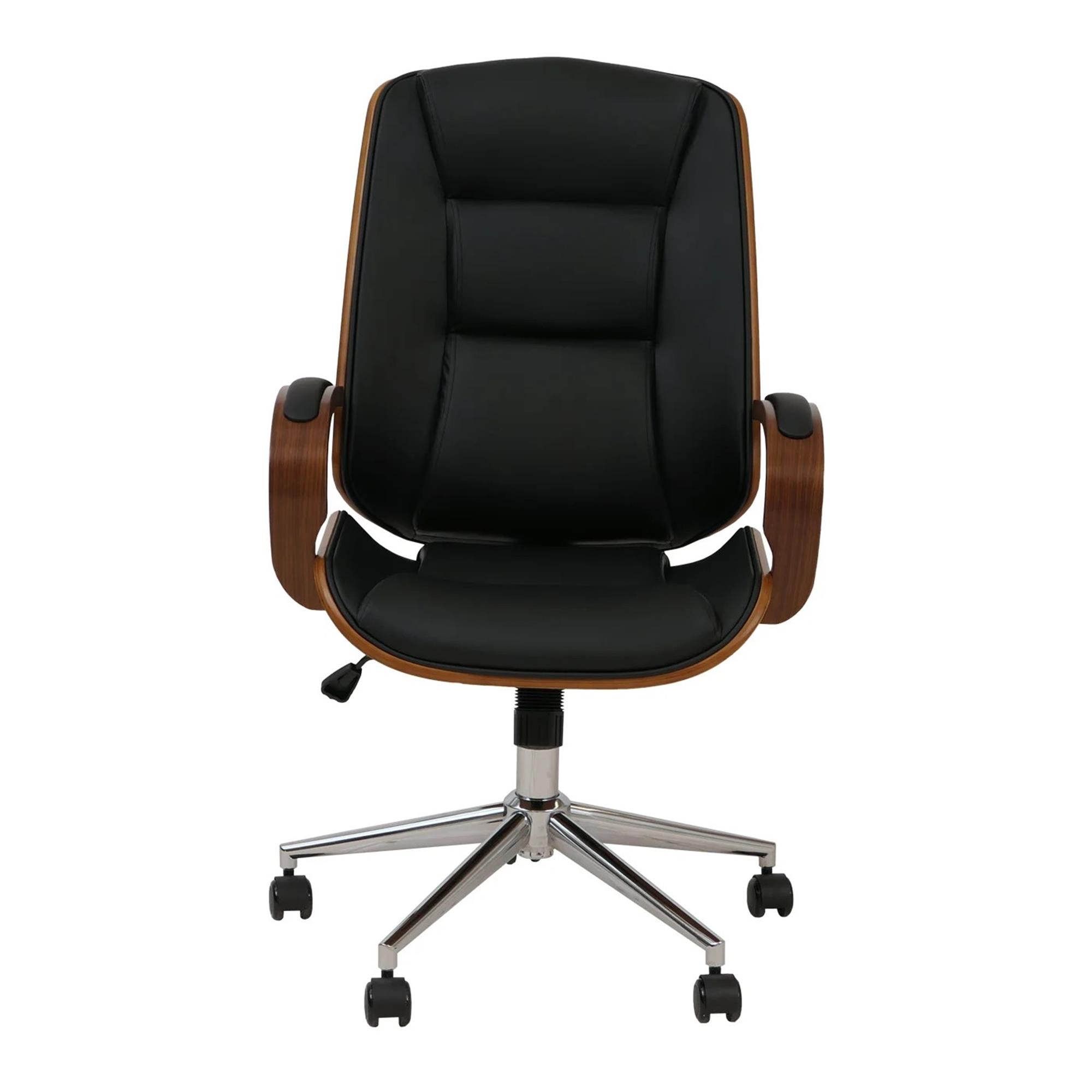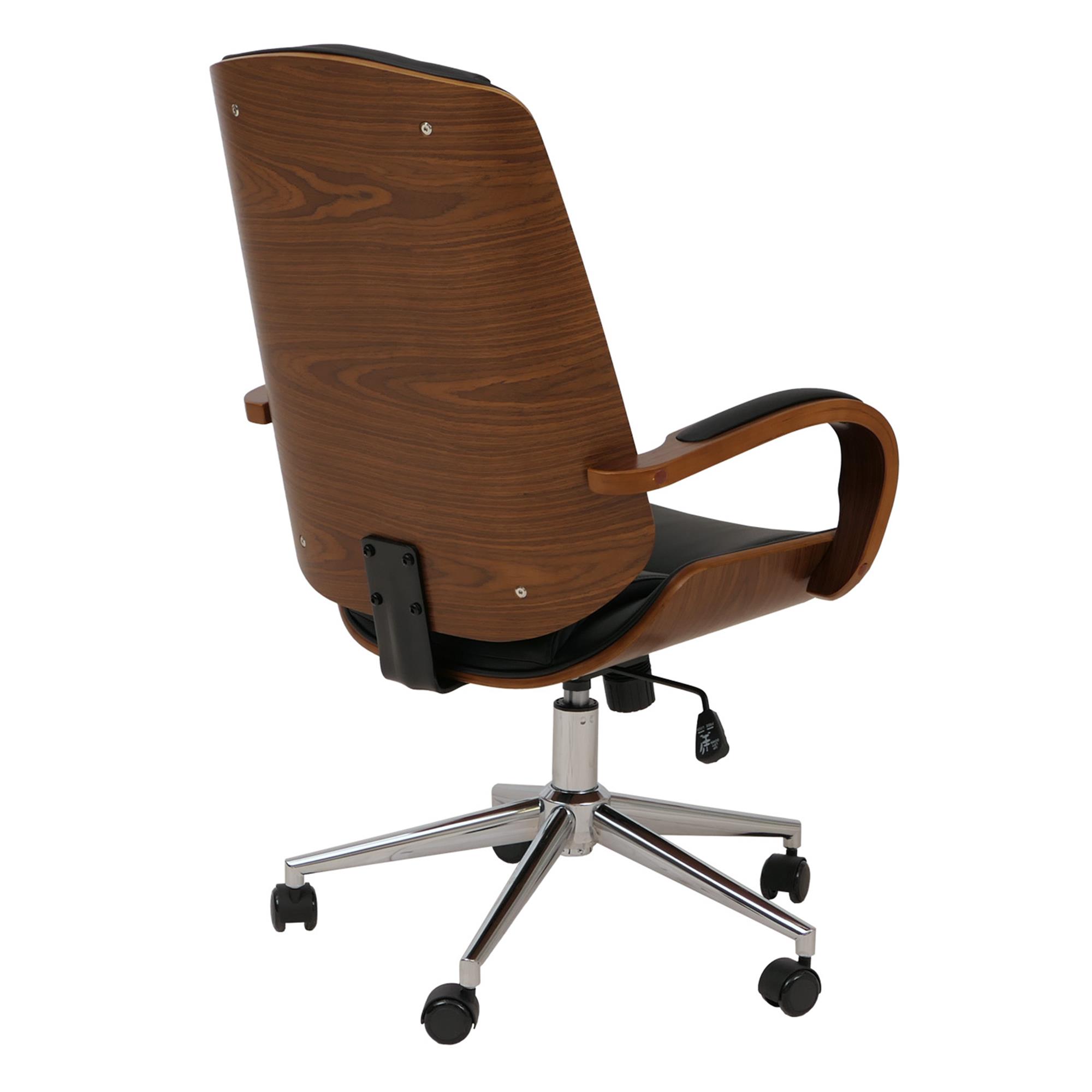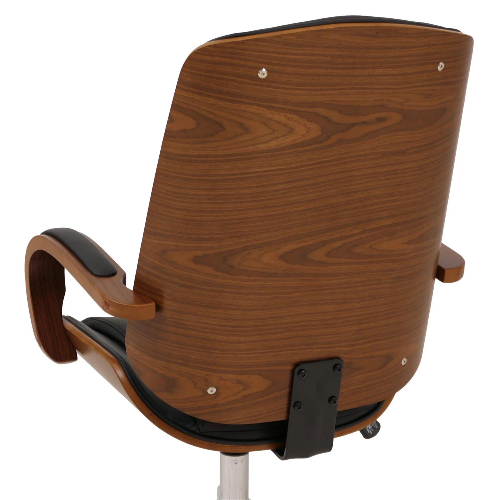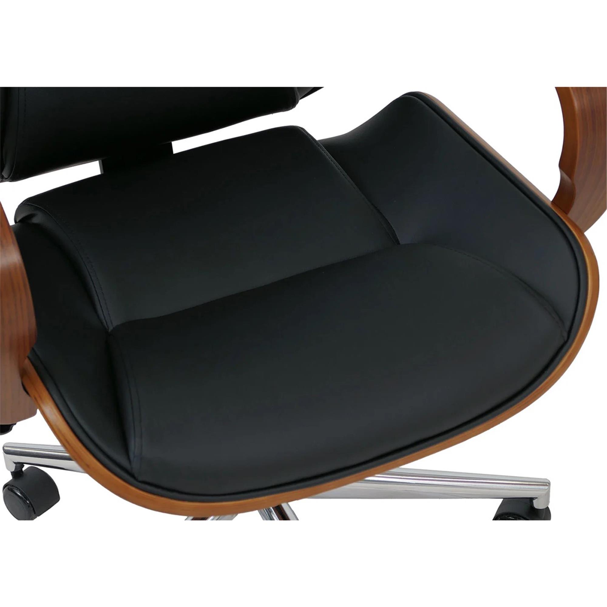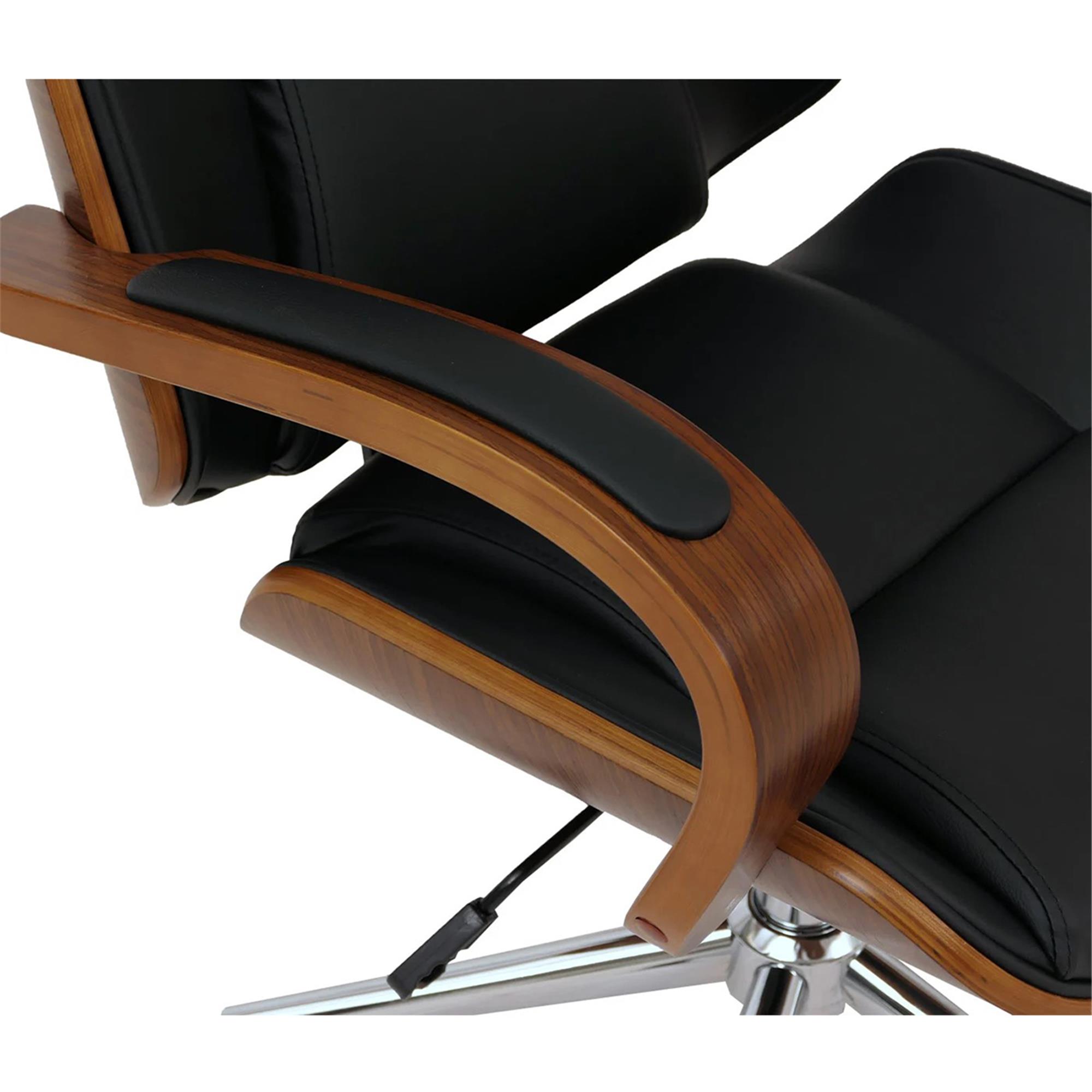 Sedia da ufficio CLARIN, Design Elegante, in Legno colore Noce e Pelle Nera