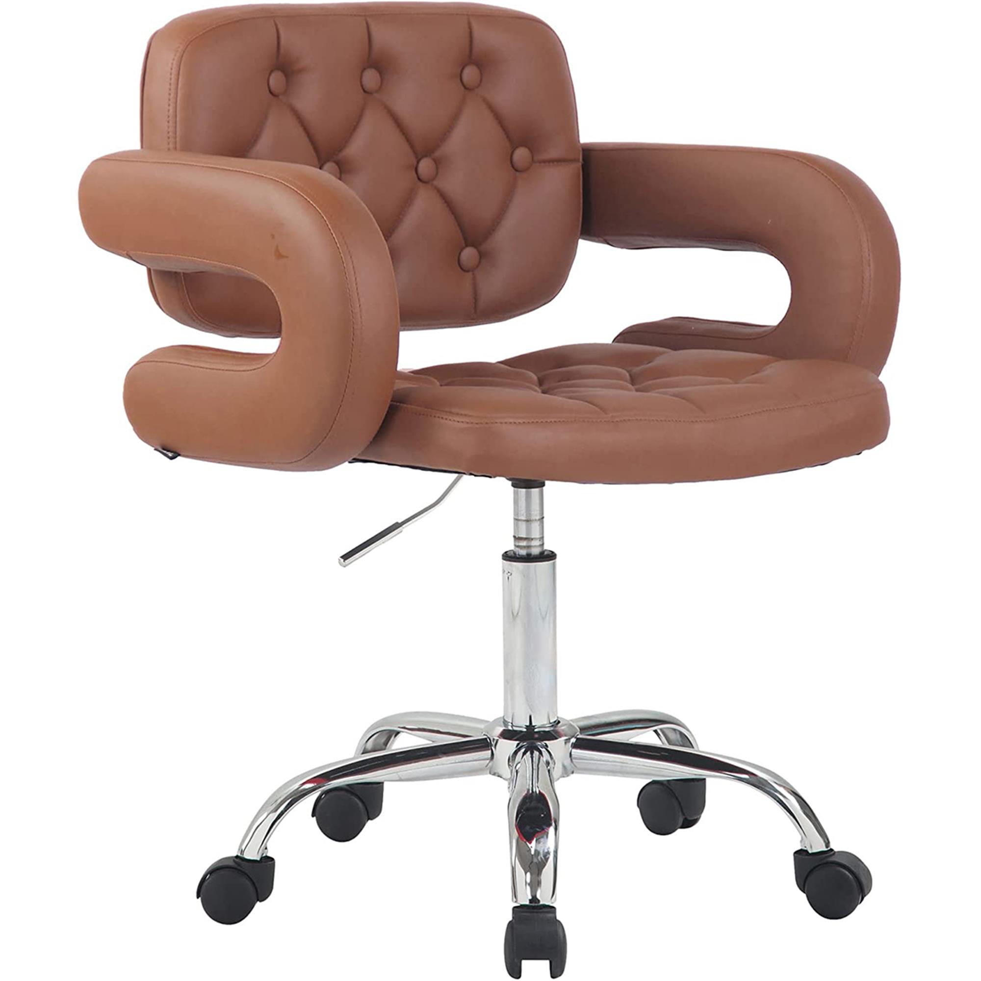 Sedia da ufficio SAMSON, Comoda Imbottitura con Braccioli, in Pelle Marrone Chiaro