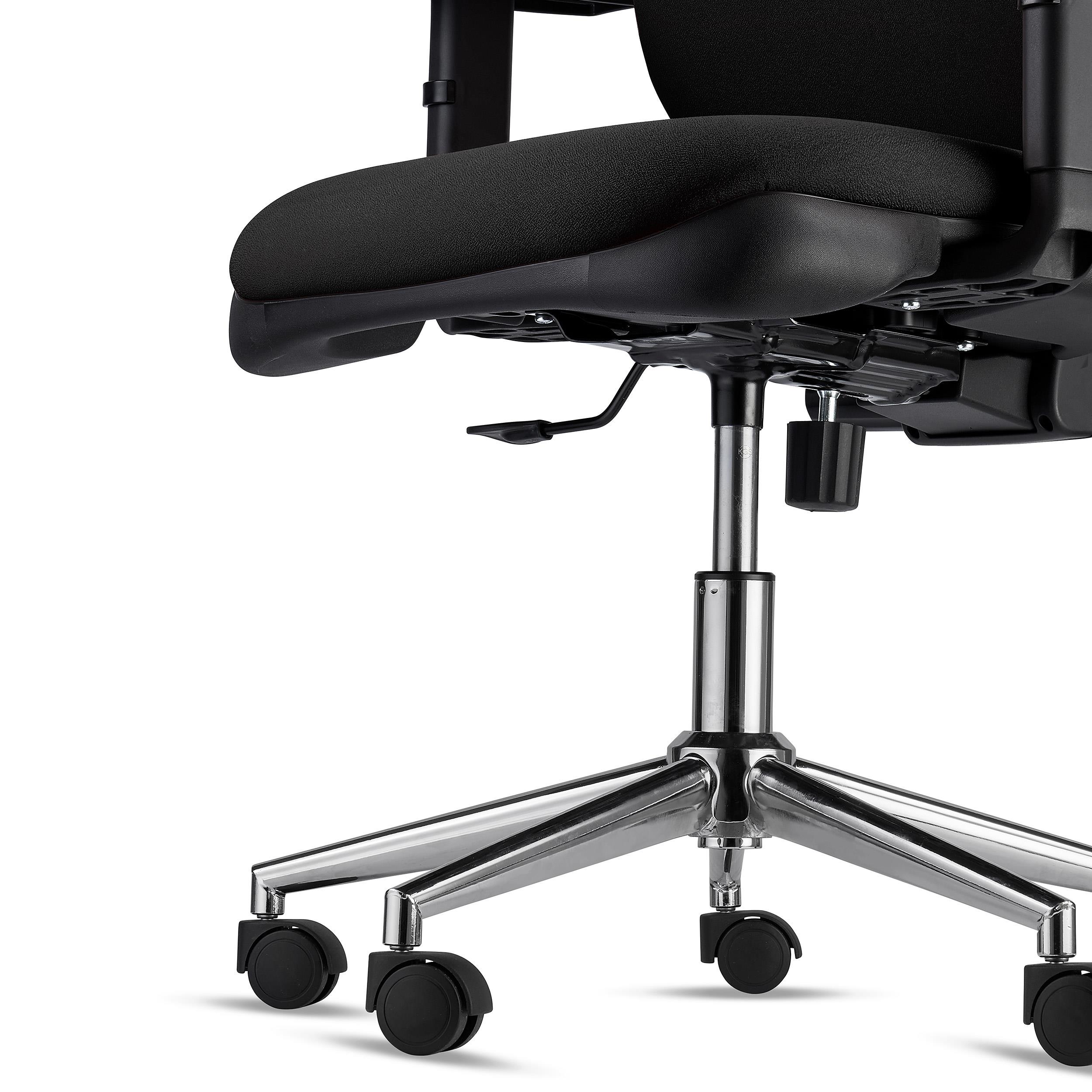 Per un maggiore comfort, è dotata di un meccanismo di reclinazione sincronizzato, bloccabile in varie posizioni. Attraverso la leva posta sotto il sedile potrai scegliere se lasciare lo schienale fisso, mobile oppure reclinato nella posizione che più ti fa comodo. Tutte queste caratteristiche, la certificazione UNI EN 1335 1-2-3 e le sue regolazioni la rendono una sedia adatta ad un utilizzo di 8 ore al giorno, che sia in casa oppure in ufficio.