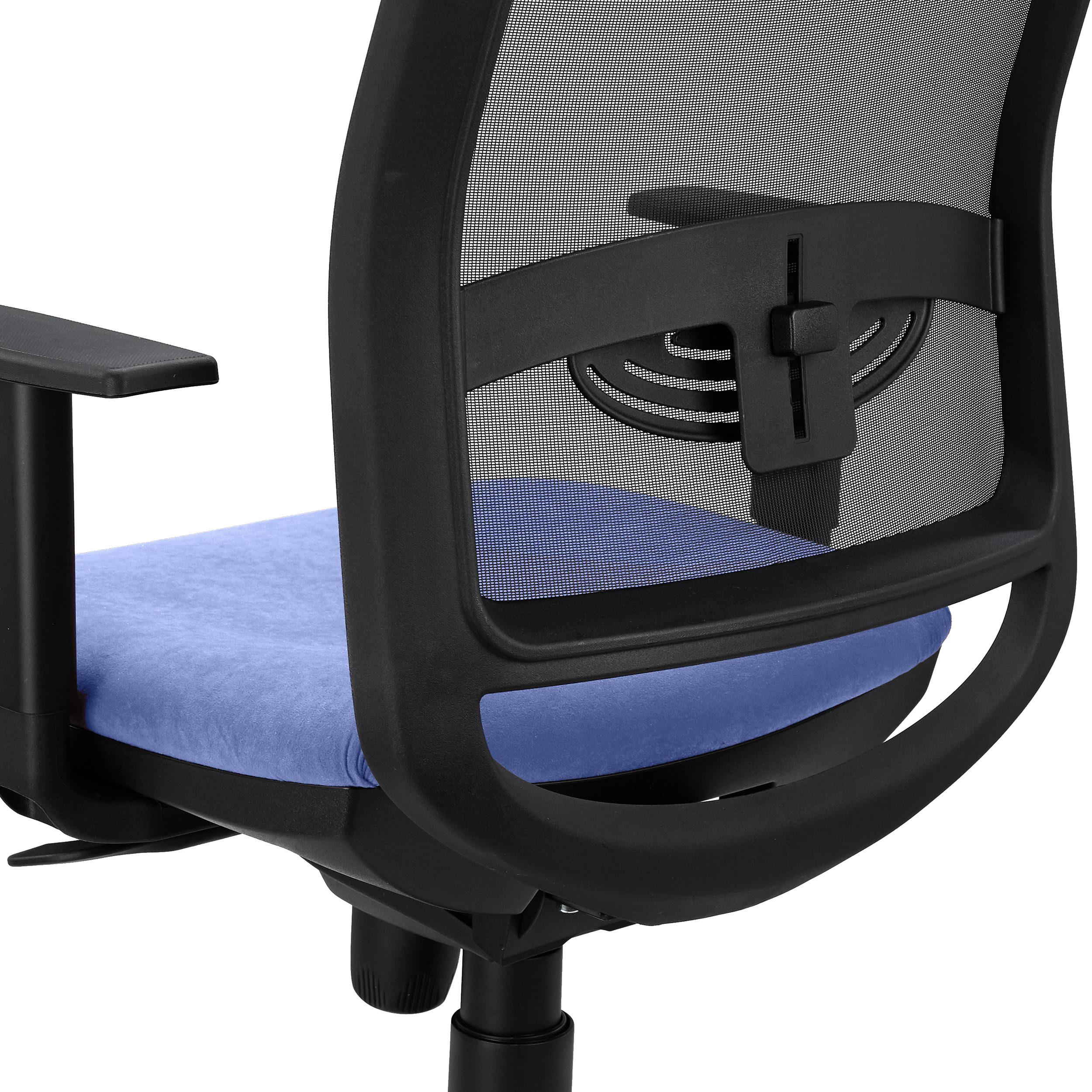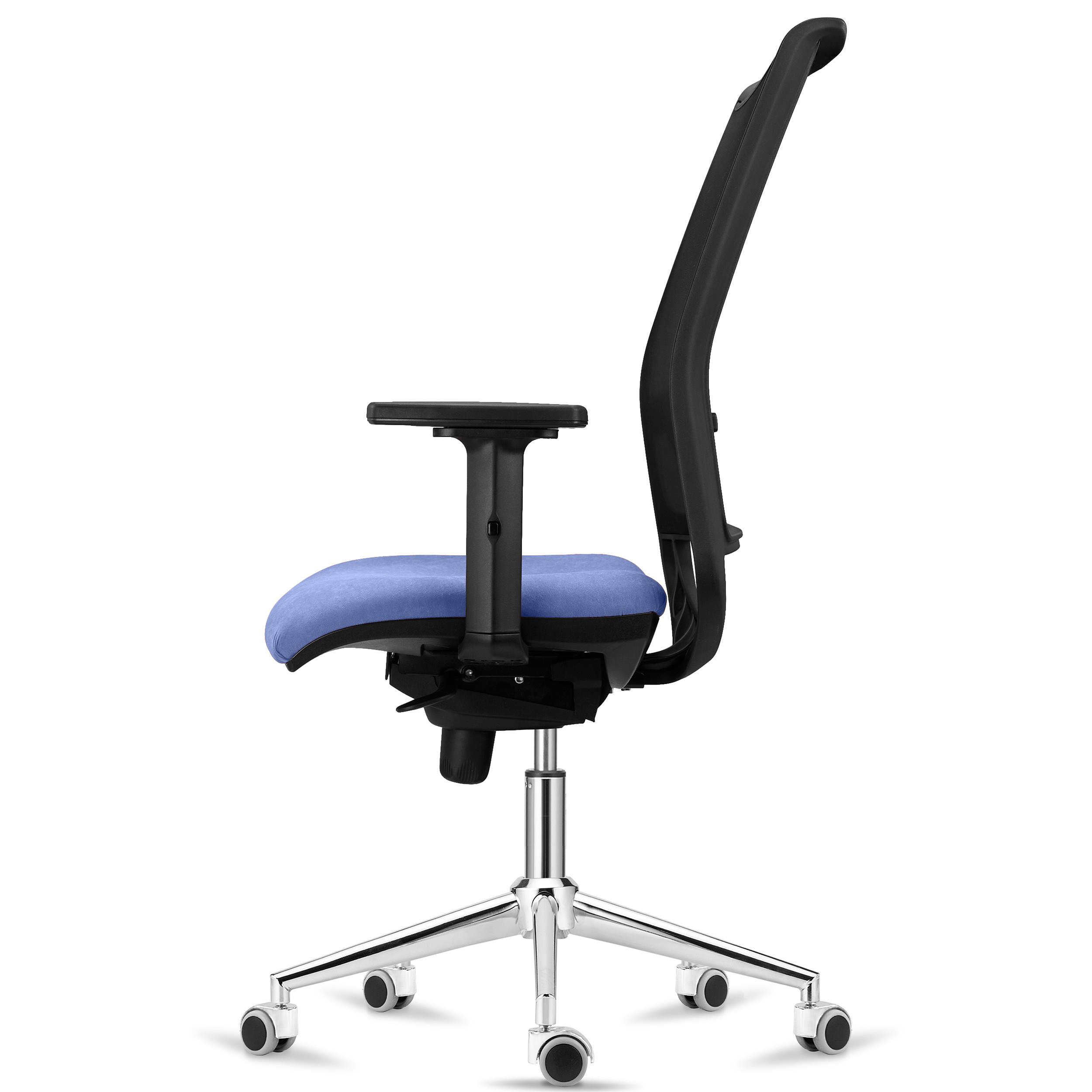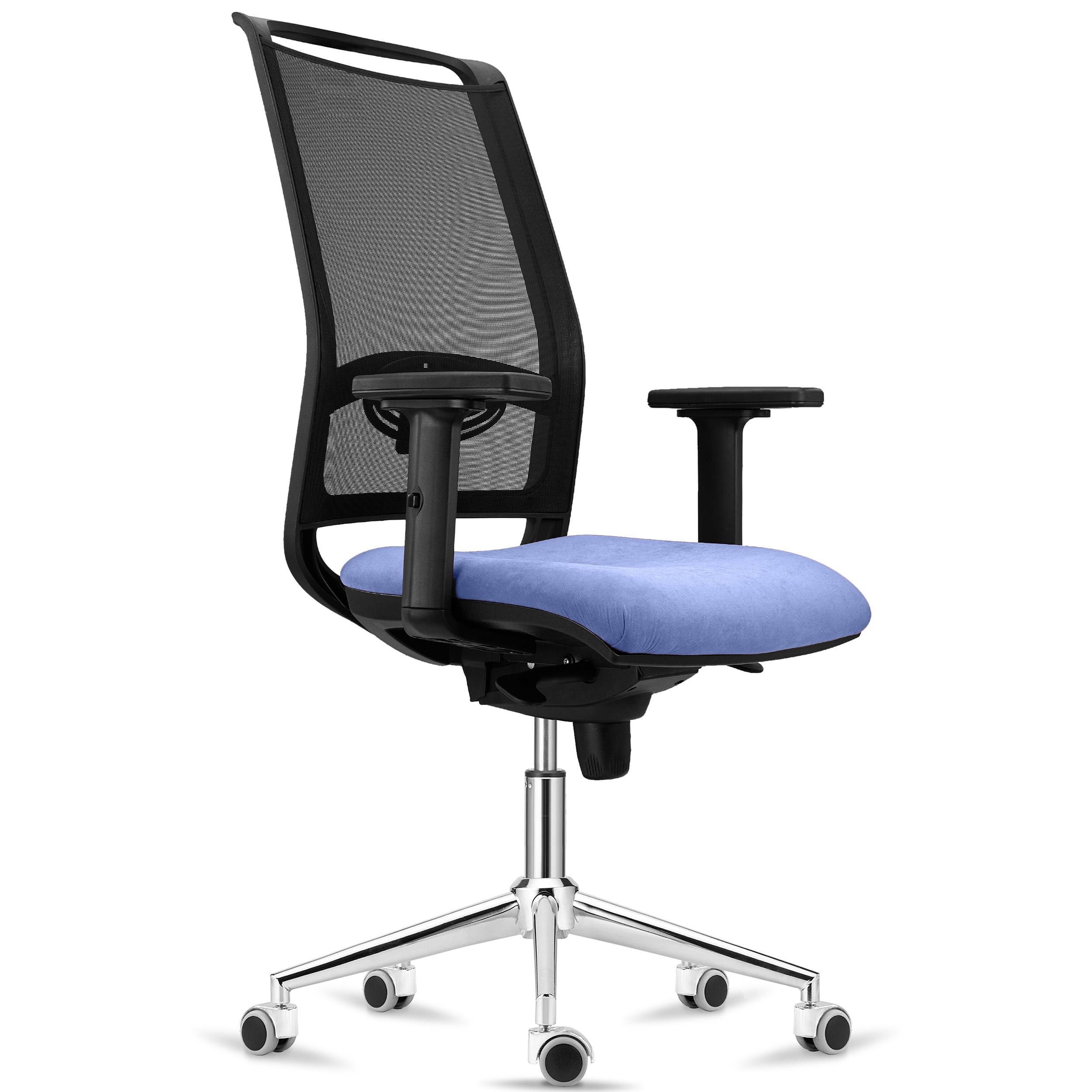Sedia Ergonomica NETTUNO, Supporto Lombare Regolabile, Base in Metallo, Tessuto e Rete, Azzurro