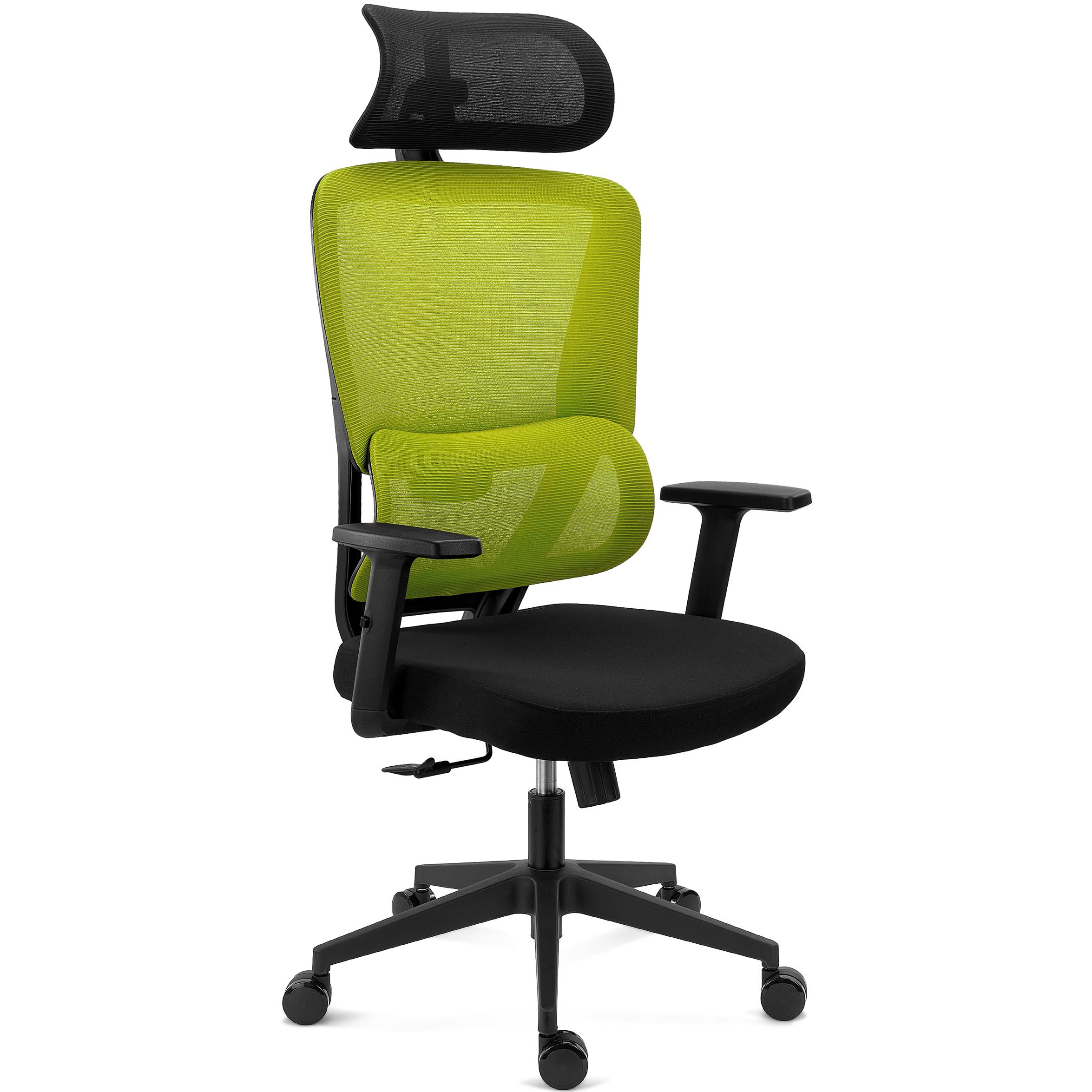 Sedia Ergonomica SUPRA, Confortevole, Supporto Lombare, Poggiatesta, Rete Traspirante e Tessuto, Verde