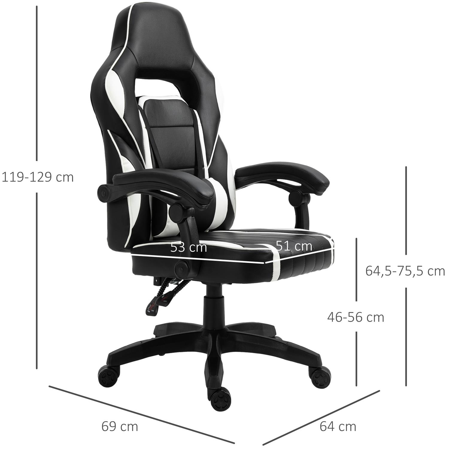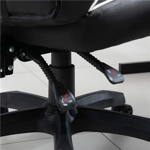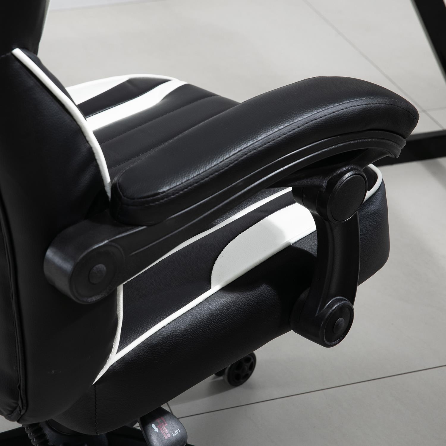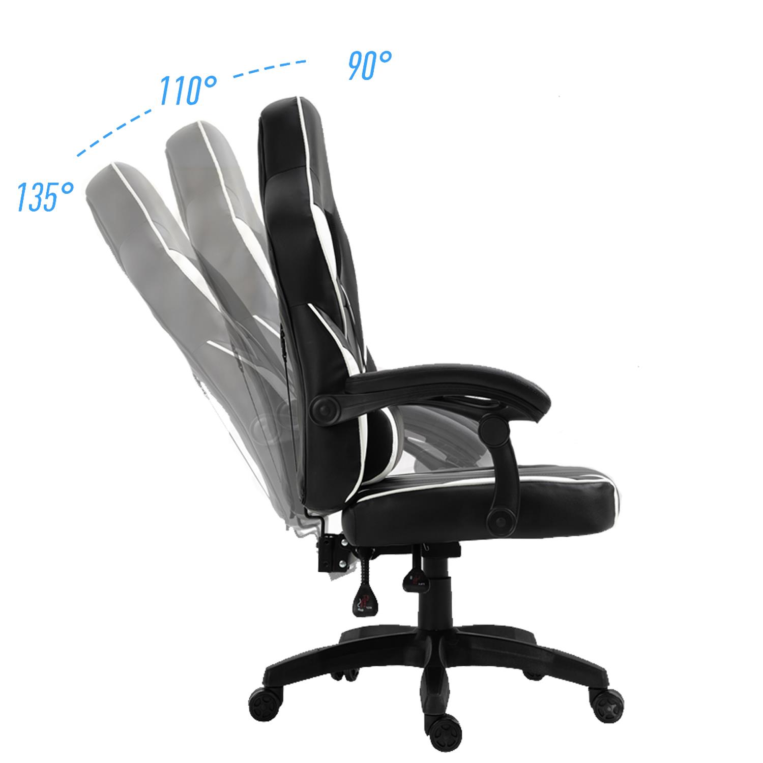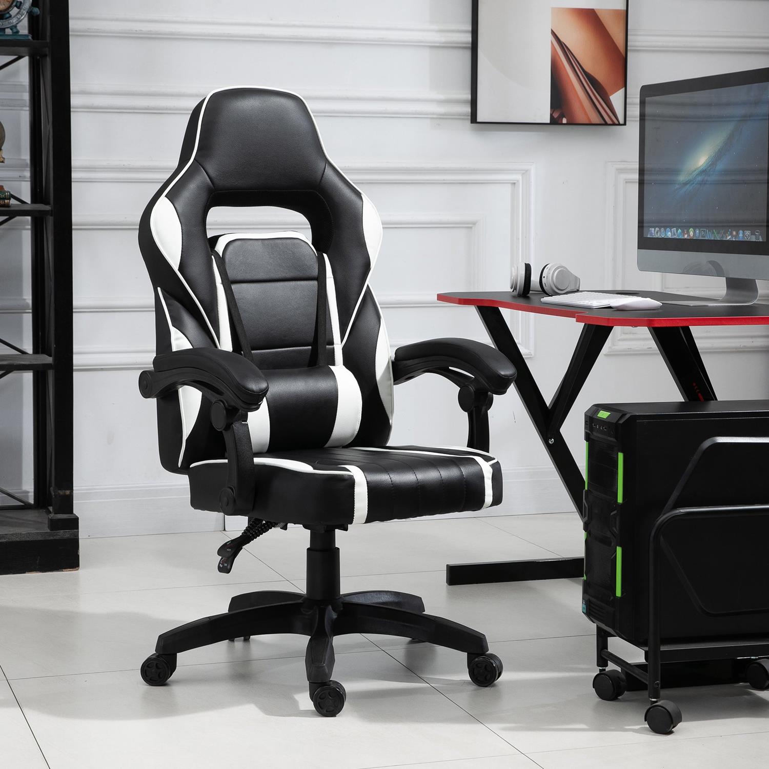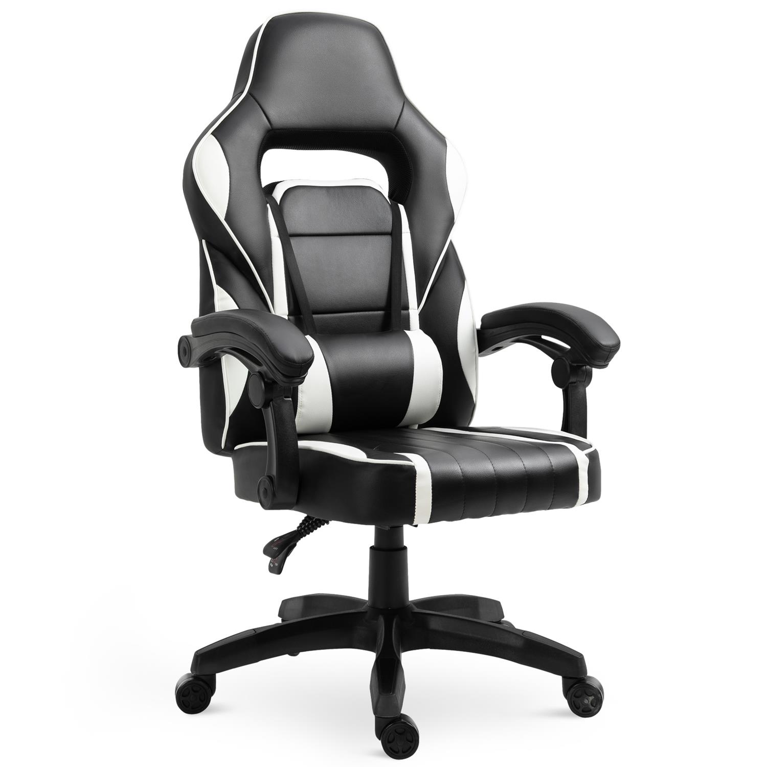 Sedia Gaming BUCAREST, Cuscino per Supporto Lombare, Pelle Nera e Bianca
